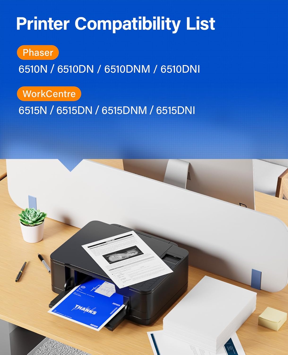 - Compatible Printer: Compatible with Xerox Phaser Series:6510N, 6510DN, 6510DNM, 6510DNI Xerox WorkCentre Series:6515N, 6515DN, 6515DNM, 6515DNI Compatible Toner Model:108R01420, 108R01417, 108R01418, 108R01419.