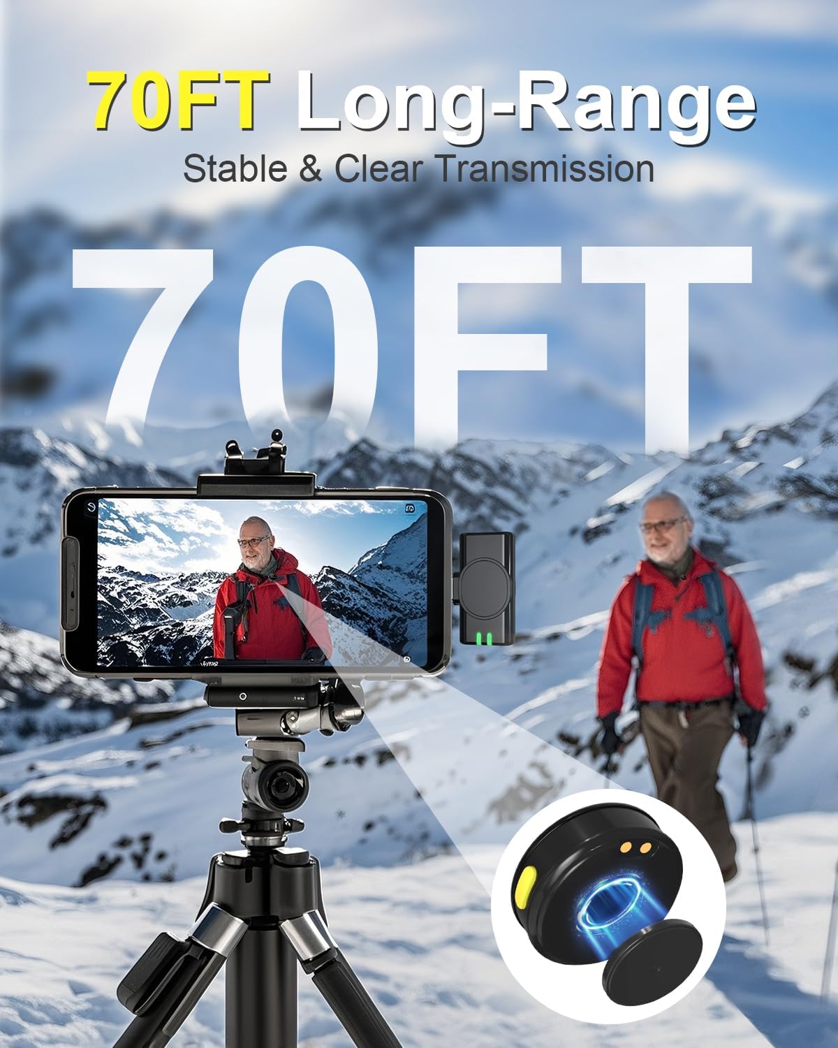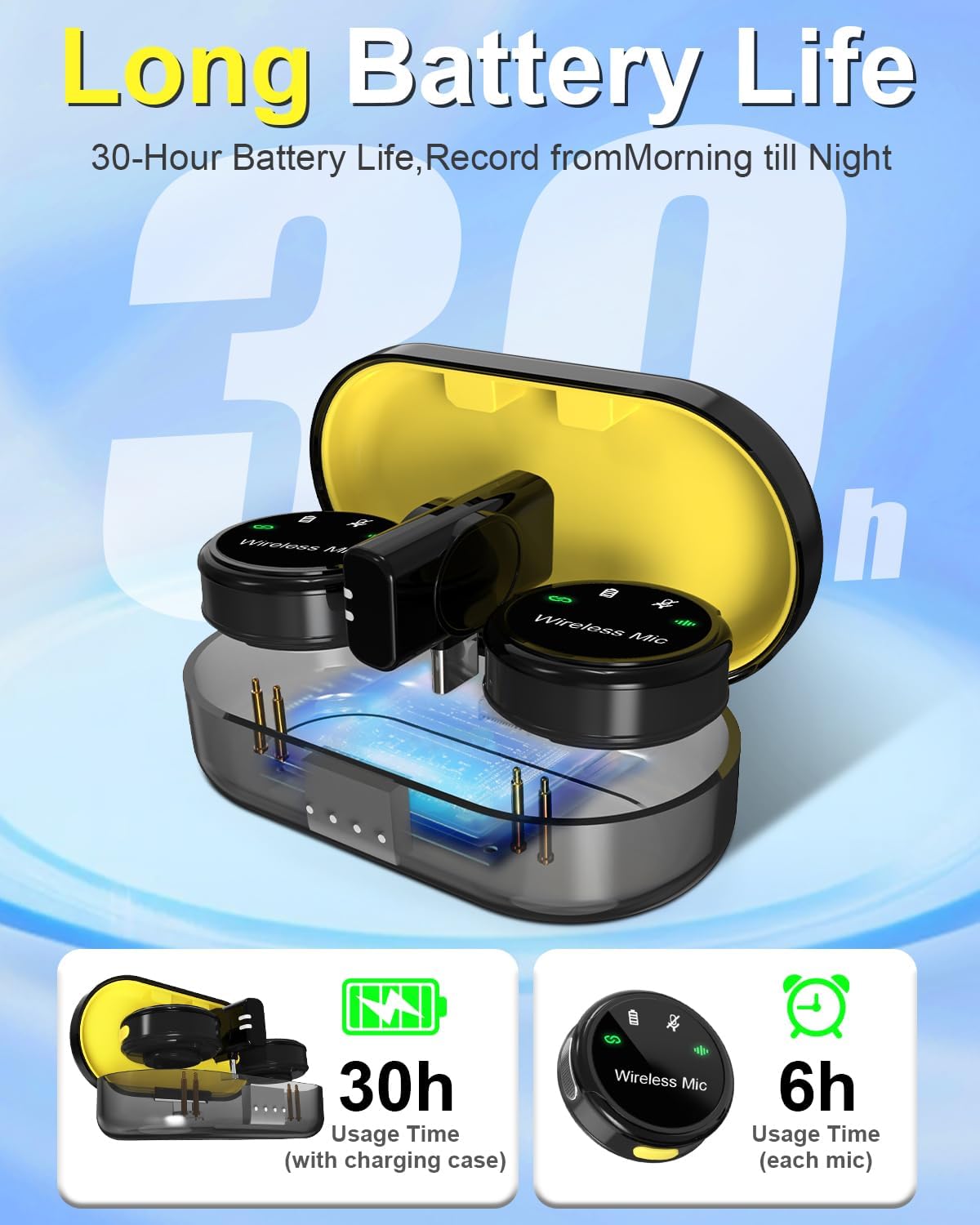 - Long Battery Life: Each mini mic delivers up to 6 hours on a single charge, with 24 extra hours from the charging case. A strong 2.4GHz signal keeps your audio stable and drop-free within 70ft—great for vlogging or streaming anywhere