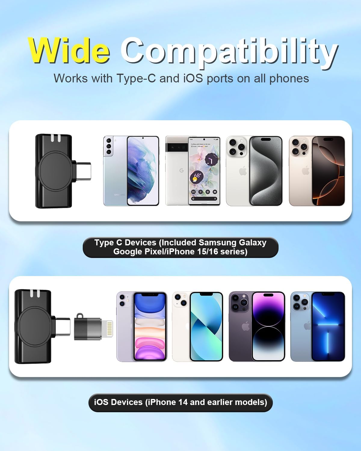 - Universal Compatibility: Equipped with both USB-C and Lightning adapter, this mic supports iPhones, iPads, Android phones, and even laptops. No Bluetooth or app required—just plug it in and start recording instantly