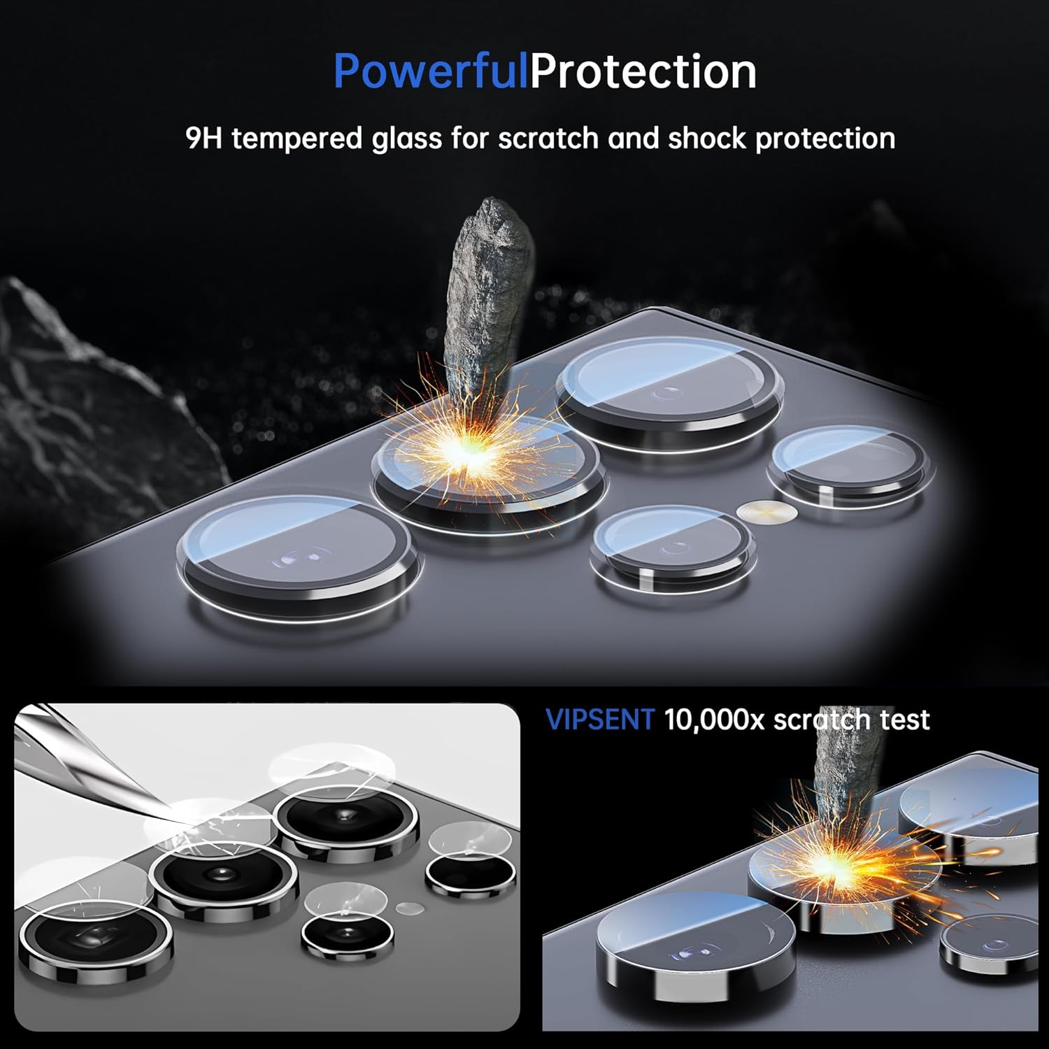 - 10x enhanced protection Made from 9H durometer sapphire coated tempered glass and aircraft aluminum alloy, each individual lens cap is strong but not bulky, providing 10x enhanced protection for the S24 Ultra camera against scratches and drops. It keeps your camera safe even during high-impact drops and is also highly resistant to scratches from everyday hard and sharp objects.