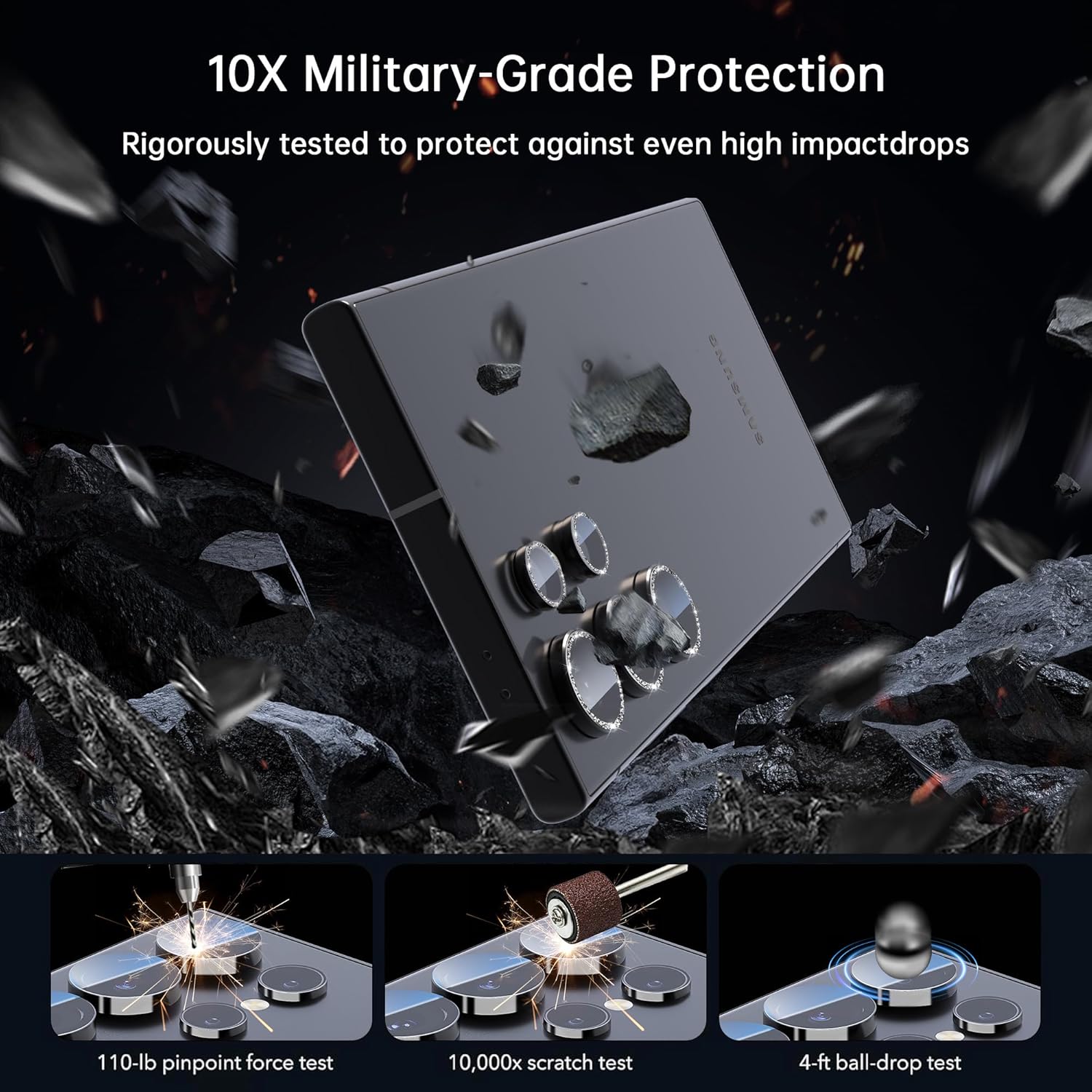- 10x enhanced protection Made from 9H durometer sapphire coated tempered glass and aircraft aluminum alloy, each individual lens cap is strong but not bulky, providing 10x enhanced protection for the S24 Ultra camera against scratches and drops. It keeps your camera safe even during high-impact drops and is also highly resistant to scratches from everyday hard and sharp objects.