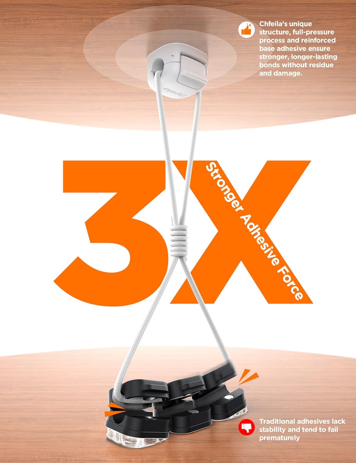 - ✅【Superior Adhesive Strength】Chfeila cable managementstarts with our exclusive adhesive system. Engineered with a unique base and pressure-holding technology, it delivers exceptional, lasting stickiness on diverse smooth surfaces: glass, metal, wood, walls, tile, car dashboards (avoid outdoor use). Removes easily without damage or residue, includes 2 extra pads for replacements. Your reliable cord organizer for desk or cord holder for nightstand. Effortless wire organizers for cords placement.