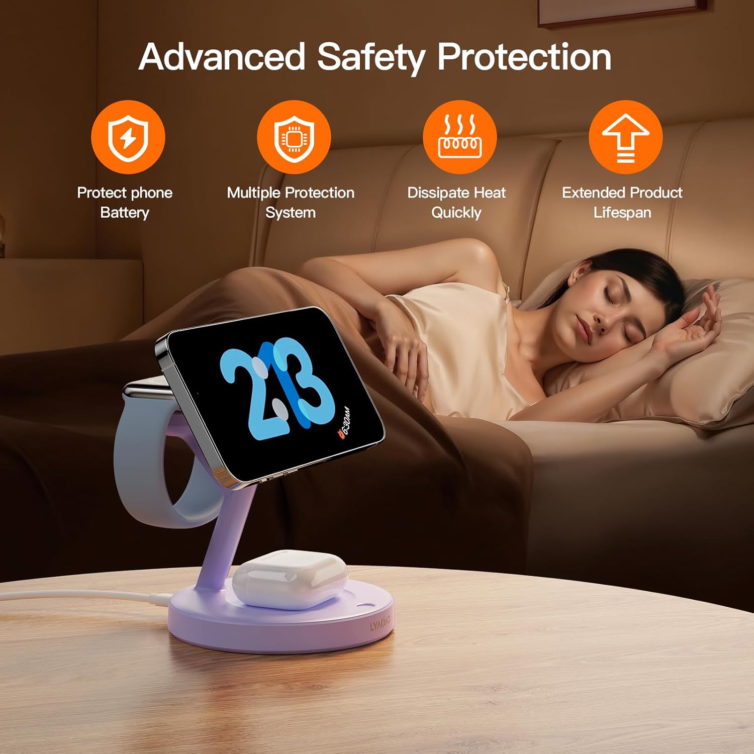 - 【Home of Apple Devices】: 3 in 1 magnetic wireless charger can charge for iPhone,for iWatch,and for AirPods.Please NOTE that the magnetic wireless charger stand only support for iPhone 16/15/14/13/12 series,the phone case only supports magnetic cases or no case,for iWatch10/9/8/7/6/5/4/3/2/SE/Ultra/Ultra 2,for AirPods 2/3/4/Pro/Pro 2(Note:For AirPods 2/3/4 come in 2 versions,make sure to use wireless charging case)Wireless charging station designed for Apple magnetic devices