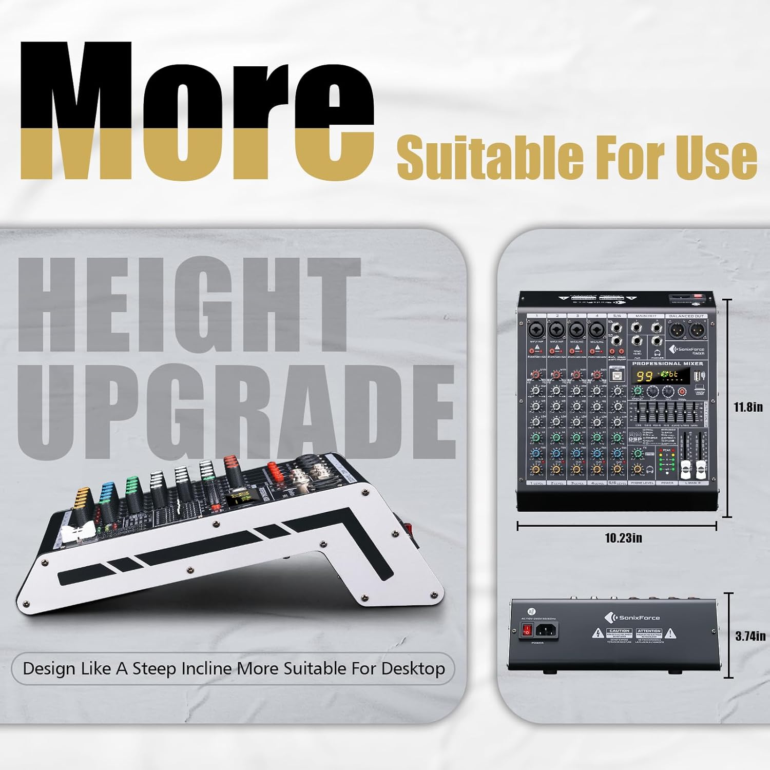 - 【STUDIO SOUND WITH PRO AUDIO CHIP】Achieve broadcast-grade clarity through our 6 Channel Sound Mixer with professional grade audio processing chip. Engineered for ultra-low noise and crystal-clear signal reproduction in critical environments: live stage monitors, studio tracking and rigorous outdoor events. Built with road-tested components ensuring zero distortion + extended durability. Hear every detail precisely as the artist intended.