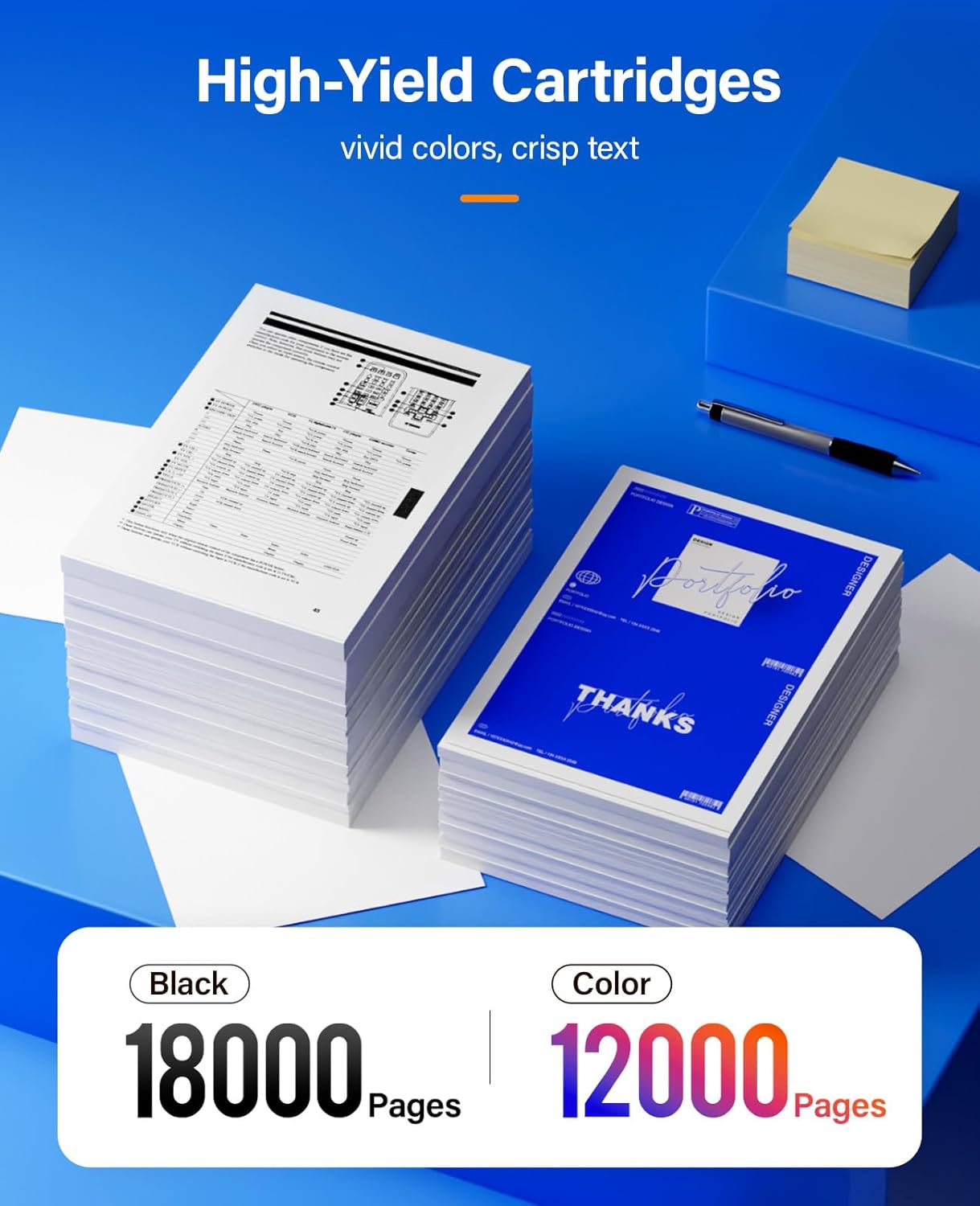 - High Page Yield: 18,000 pages for Black and 12,000 pages for Color toner cartridge (Letter/A4, at 5% coverage).
