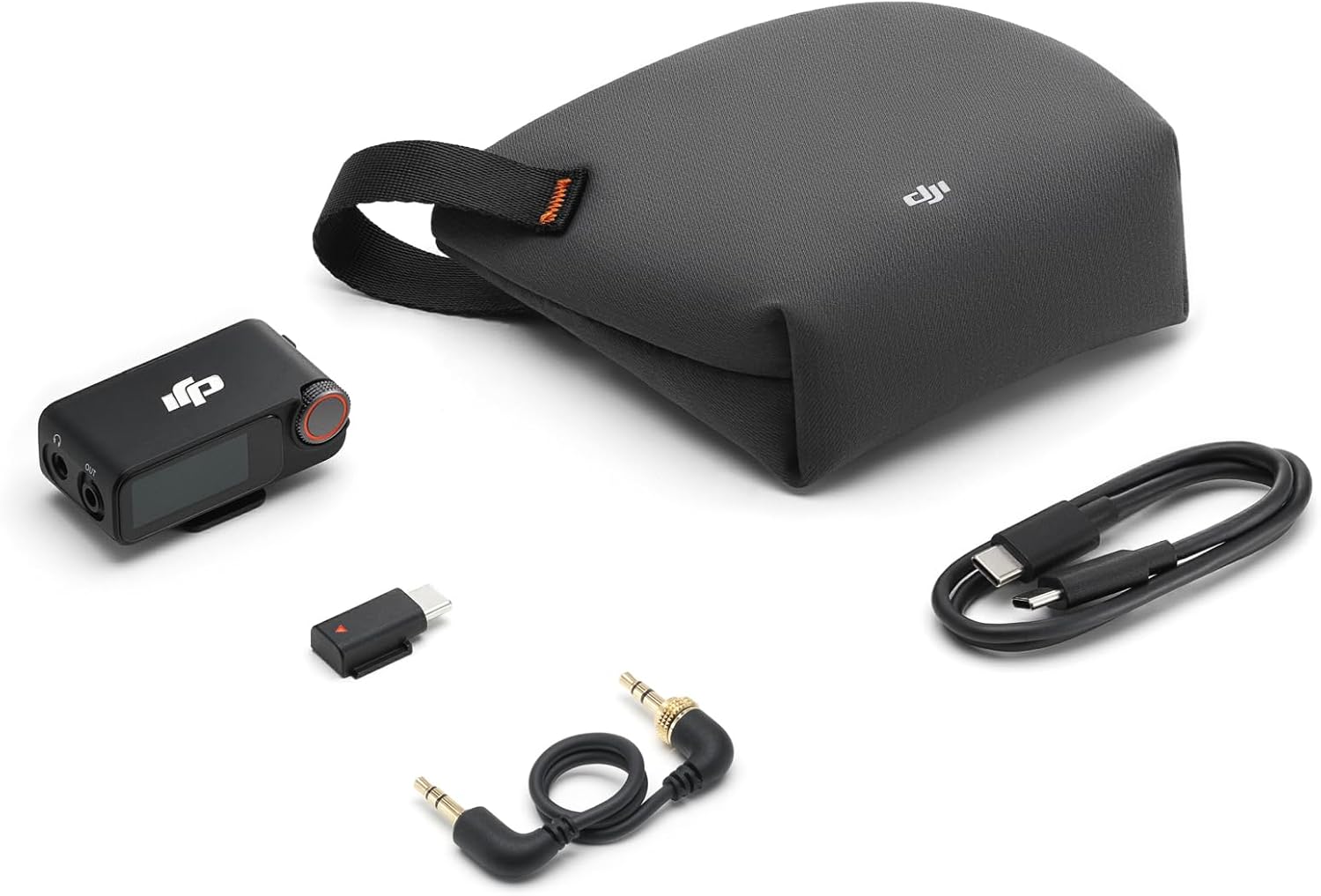 - In the Box: DJI Mic 3 Receiver × 1, DJI Mic 3 Mobile Phone Adapter (USB-C) × 1, USB-C to USB-C Data Cable × 1, DJI Mic 3 Locking Audio Adapter Cable (3.5mm TRS to TRS) × 1, DJI Mic 3 Compact Carrying Pouch × 1