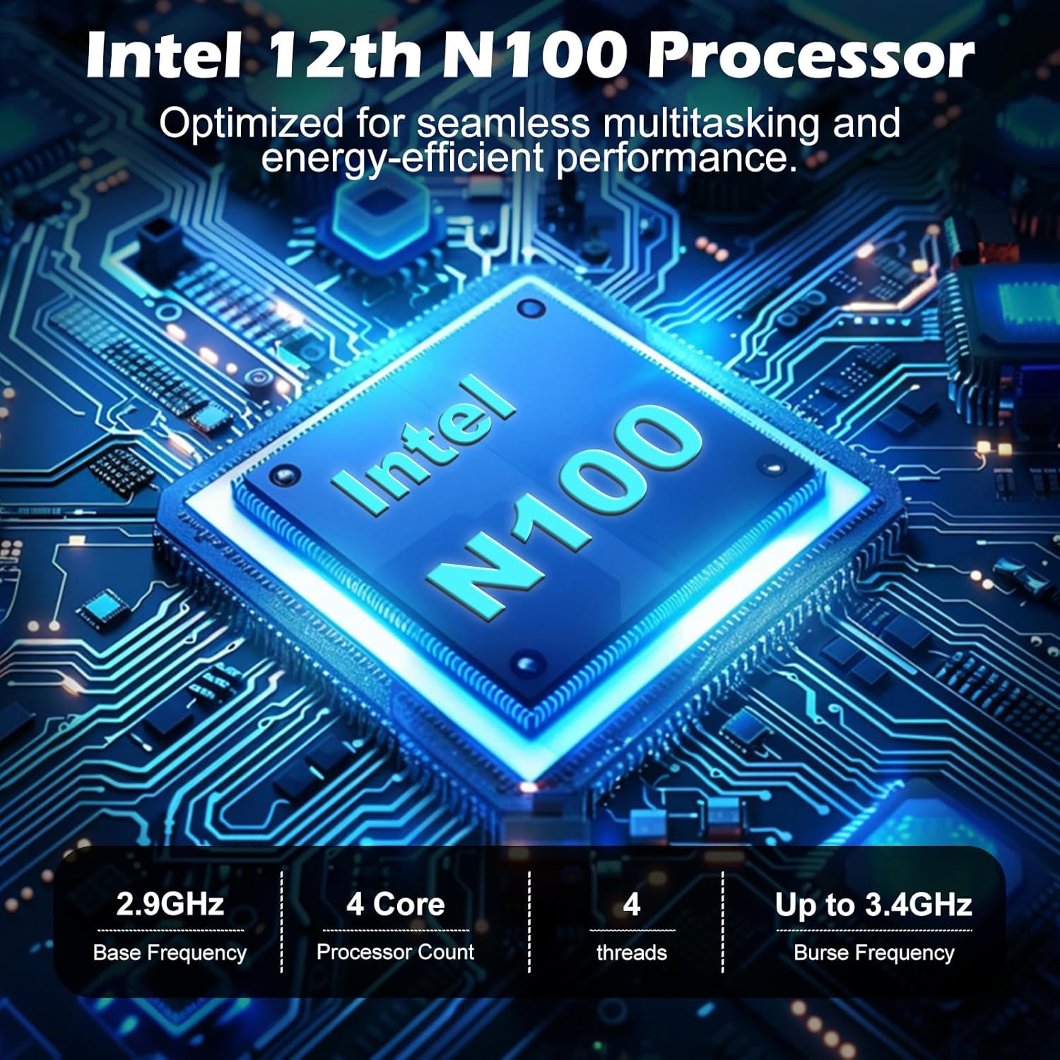 - 【Intel 12th Gen Quad-Core N100 Processor】Powered by the Intel N100 quad-core processor from the 12th generation, this laptop ensures smooth performance for multitasking, productivity, and everyday computing. Perfect for document editing, web browsing, and virtual meetings.