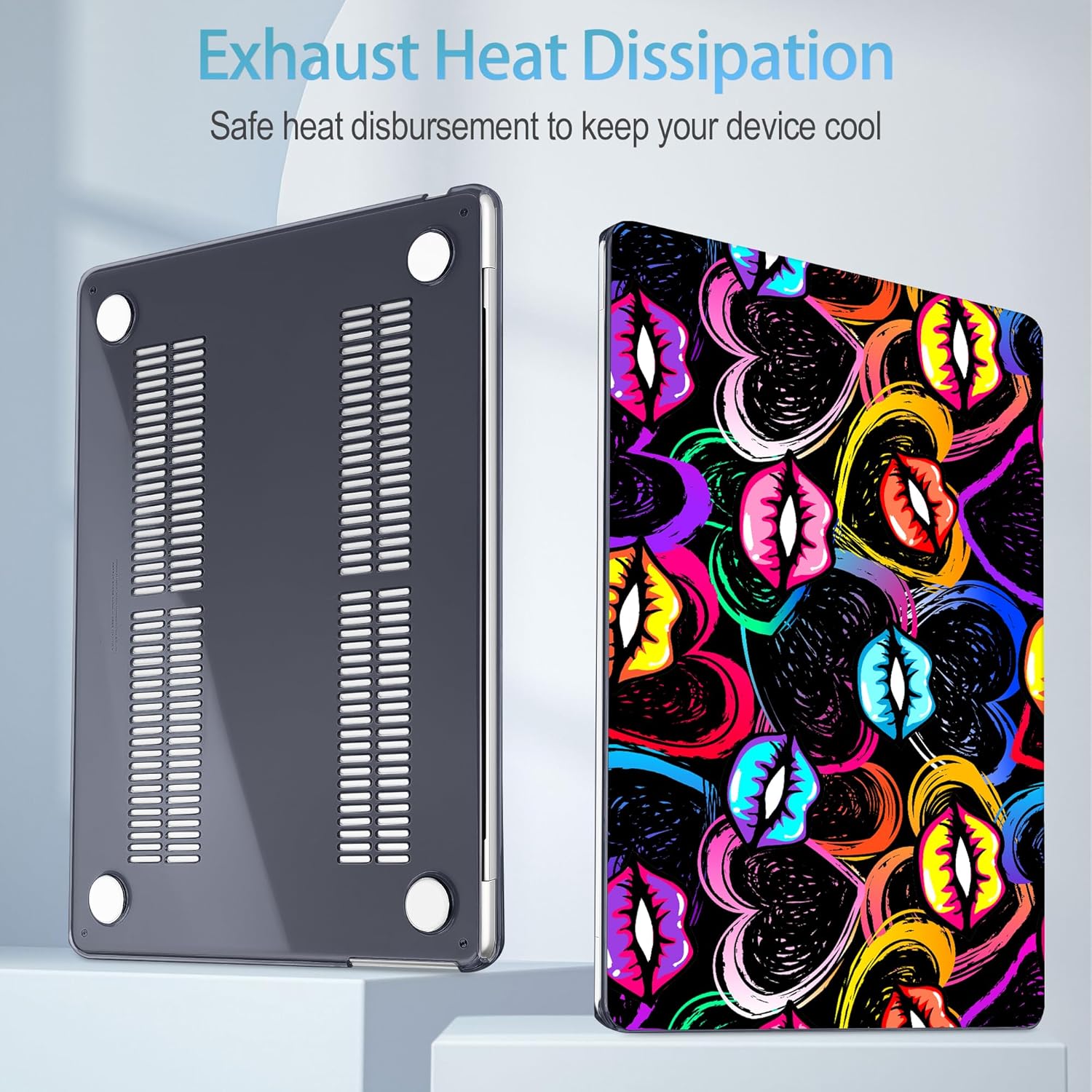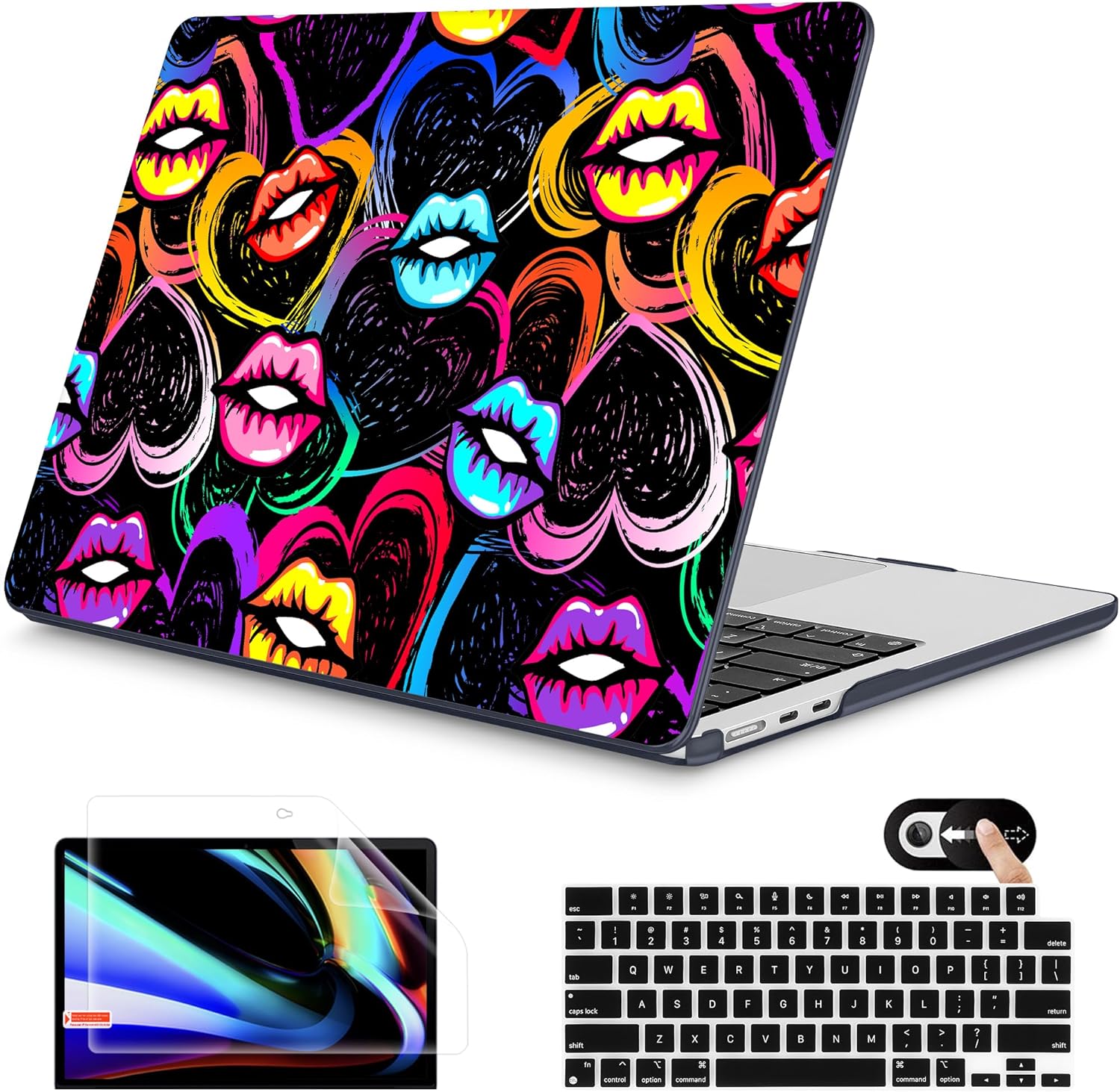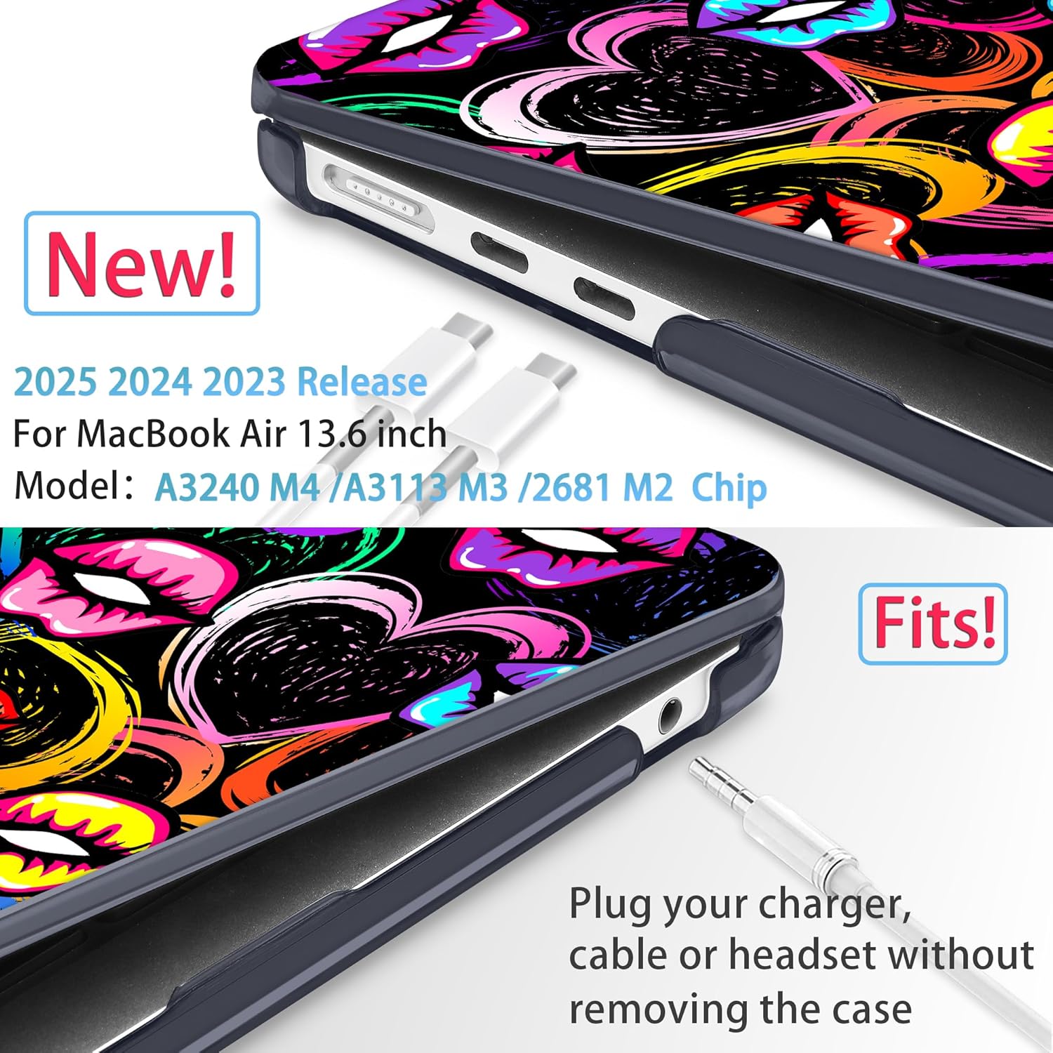 Mektron for 2025 M4 MacBook Air 13.6 Inch A3240 Case Fits 2023 A2681 M2 2024 A3113 M3 Chip with Liquid Retina Display Touch ID, Printed Plastic Hard Shell Cover for MacBook Air 13.6", Colorful Lips