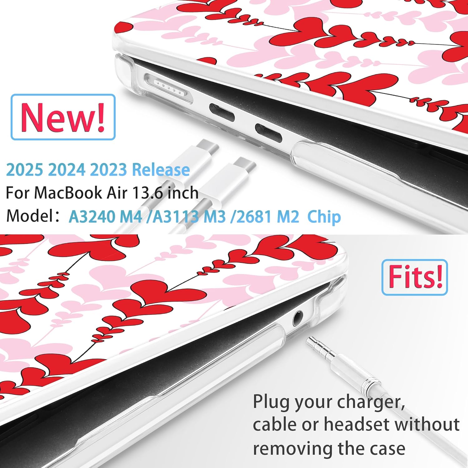 Mektron for 2025 M4 MacBook Air 13.6 Inch A3240 Case Fits 2023 A2681 M2 2024 A3113 M3 Chip with Liquid Retina Display Touch ID, Printed Plastic Hard Shell Cover for MacBook Air 13.6", Heart Wave
