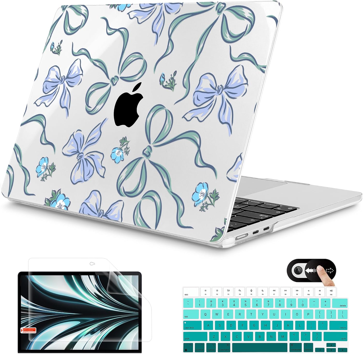 Mektron for 2025 M4 MacBook Air 13.6 Inch A3240 Case Fits 2023 A2681 M2 2024 A3113 M3 Chip with Liquid Retina Display Touch ID, Printed Plastic Hard Shell Cover for MacBook Air 13.6", Bows C355