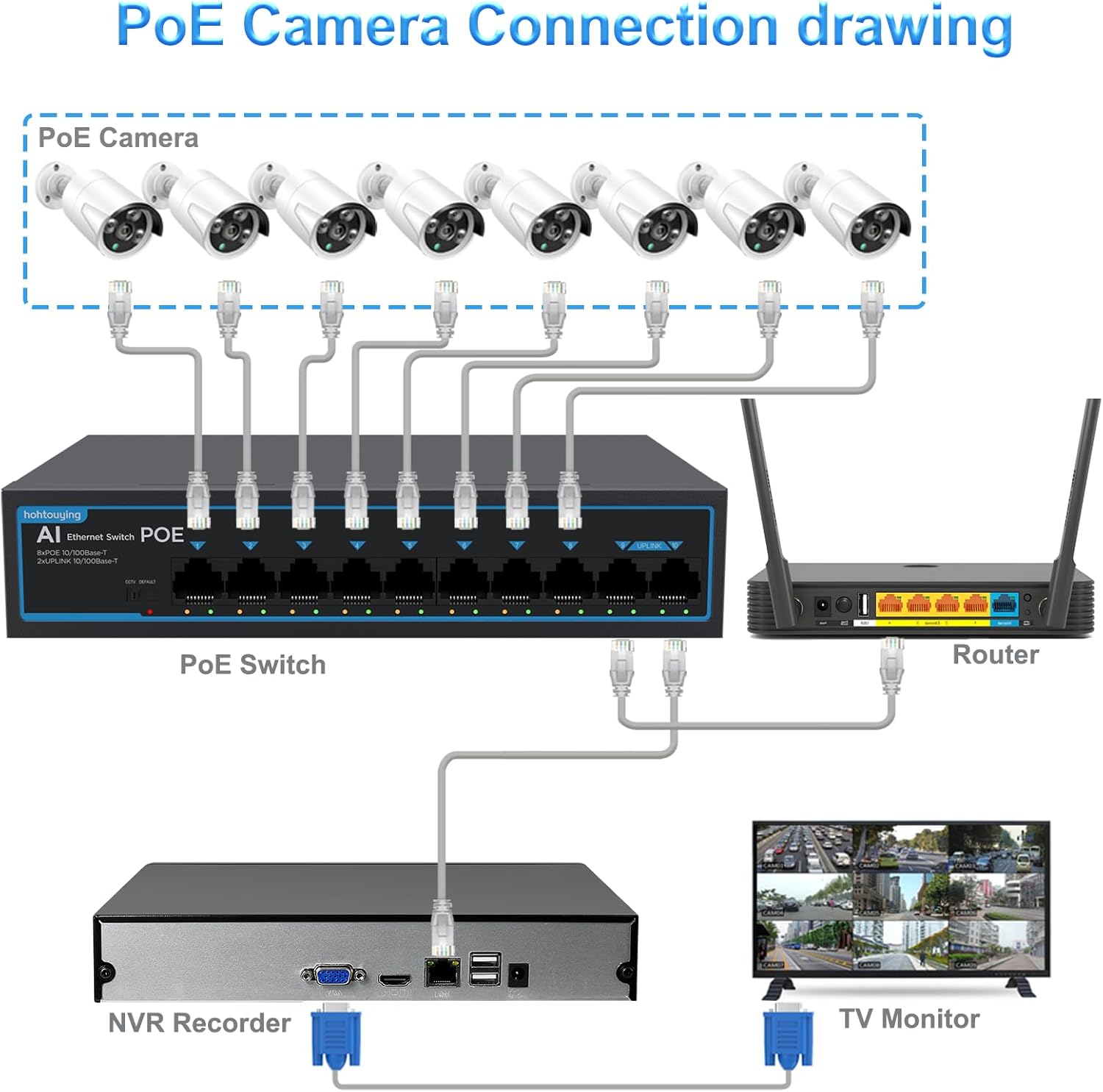 - ใ๐ด๐ฐ๐ต ๐๐ถ๐ด๐ฎ๐ฏ๐ถ๐ ๐ฃ๐ผ๐ ๐ฆ๐๐ถ๐๐ฐ๐ต*๐ญ๐ฎ๐ฌ๐ชใTotal PoE budget 120W,8ch 1000M PoE port + 2ch 1000M Uplink port, 8รPoE ports Supply up to 30W/port, 2 Gigabit Ethernet Uplink Port for NVR and Routers, etc