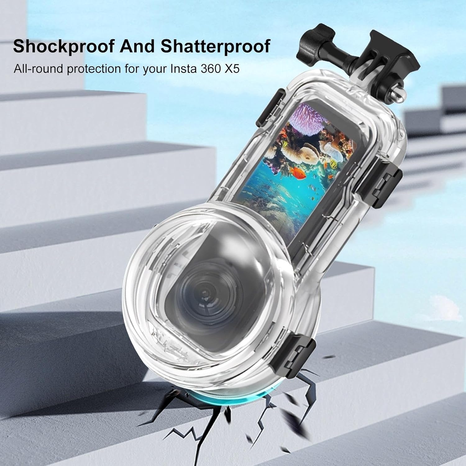 - Specially Designed: A waterproof housing kit specially designed for Insta360 X5 camera, which can support a waterproof depth of up to 60 meters (196FT)
