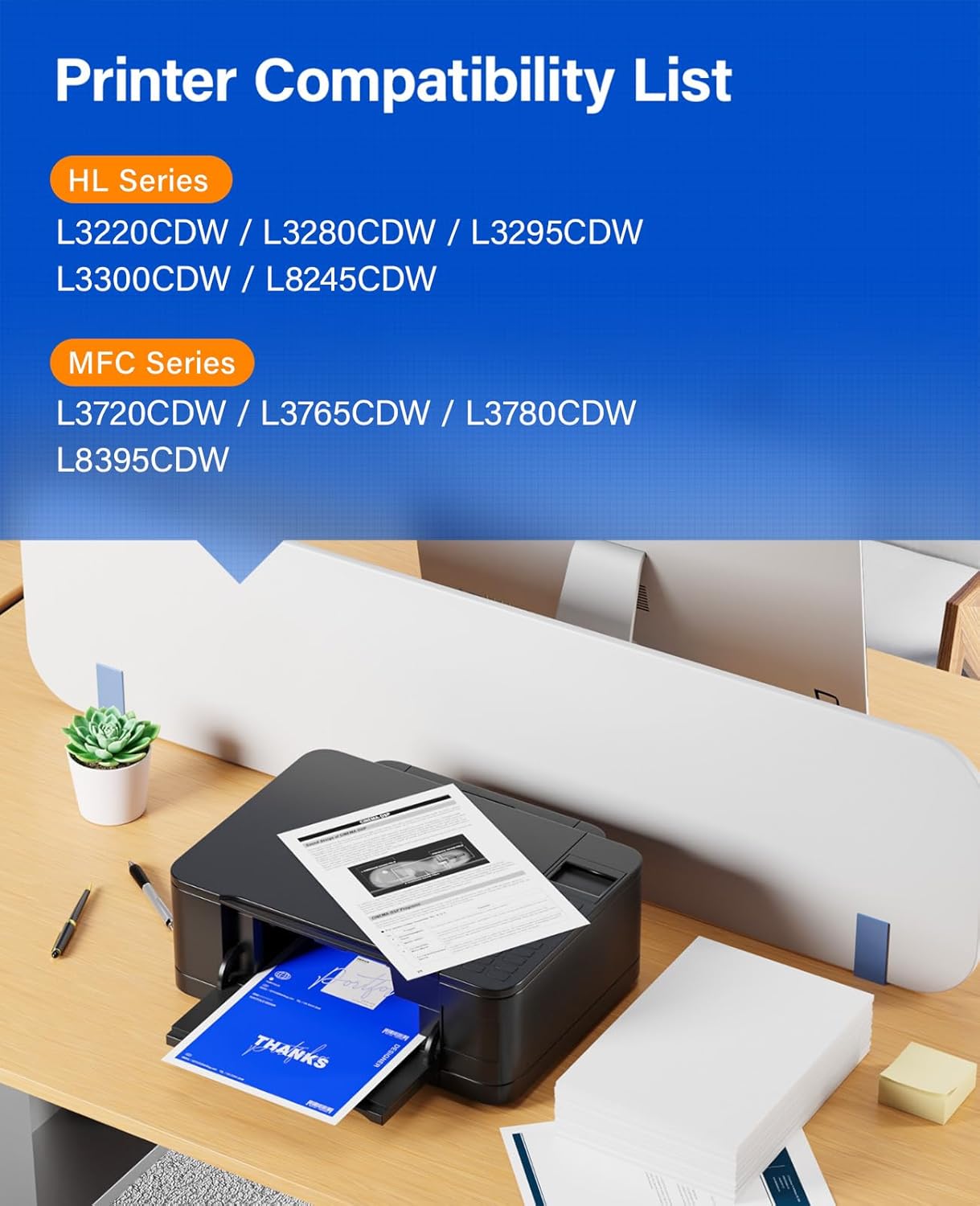 - To use with: Compatible for Brother HL-L3220CDW, HL-L3280CDW, HL-L3295CDW, HL-L3300CDW, HL-L8245CDW, MFC-L3720CDW, MFC-L3765CDW, MFC-L3780CDW, MFC-L8395CDW Laser Printer.