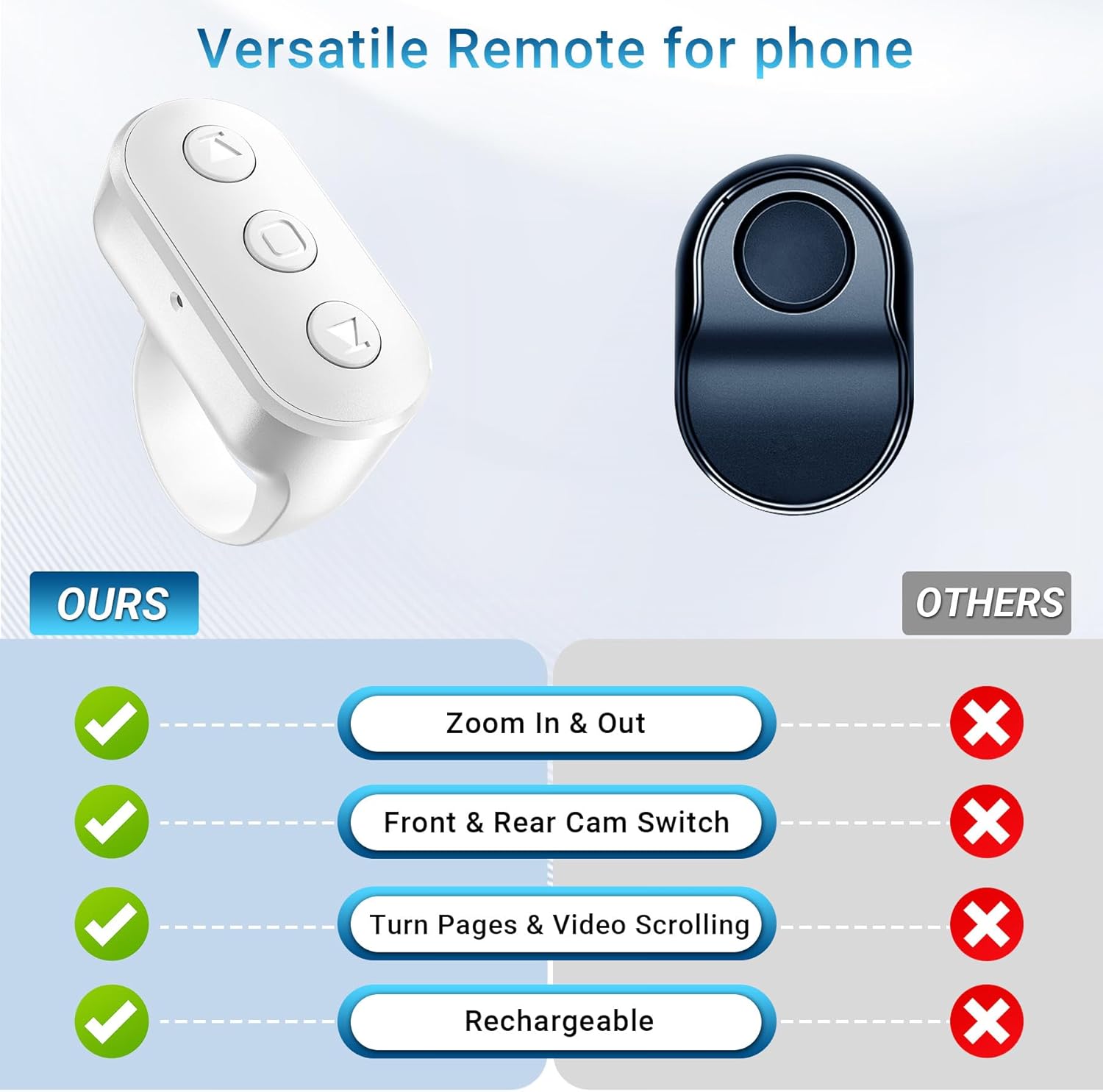 - [ Zoom in & out ] This phone remote shutter with zoom feature can help you zoom in and out from a distance when taking photos and videography, bringing great convenience and making your photography shooting more professional. A must have filming gear for Tiktoker Youtuber Influencer
