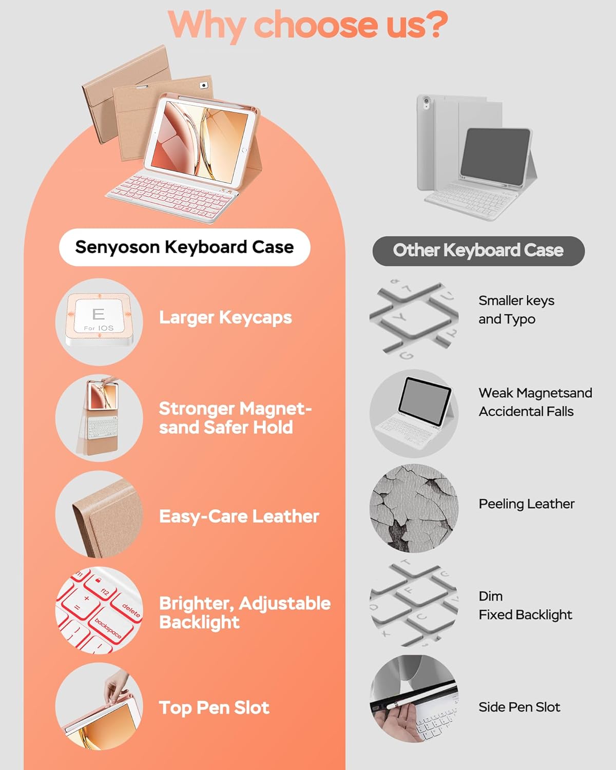 - 【Premium Material】Senyoson for ipad keyboard case is made of good quality PU. Soft, smooth and it gives a luxurious feeling. The interior case is made of high-quality flexible TPU with honeycomb heat dissipation. Keyboard case can protect your tablet from drops and scratches. Precise cutout allows full access to all ports, sensors, speaker, microphone and camera