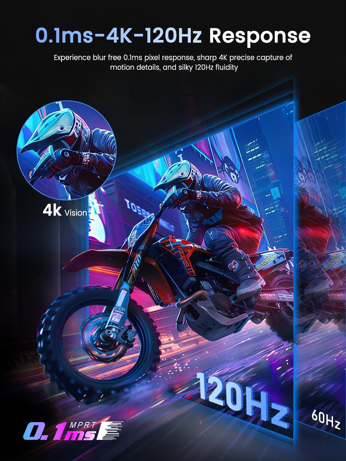 - 0.1ms Fast Gaming Monitor: The gaming monitor is not only fast, but also has a 0.1MS instant response. At 0.1 milliseconds, the conversion speed of pixels is extremely fast, completely eliminating motion blur and ghosting, turning chaos into clarity, and instantly redefining the gaming experience