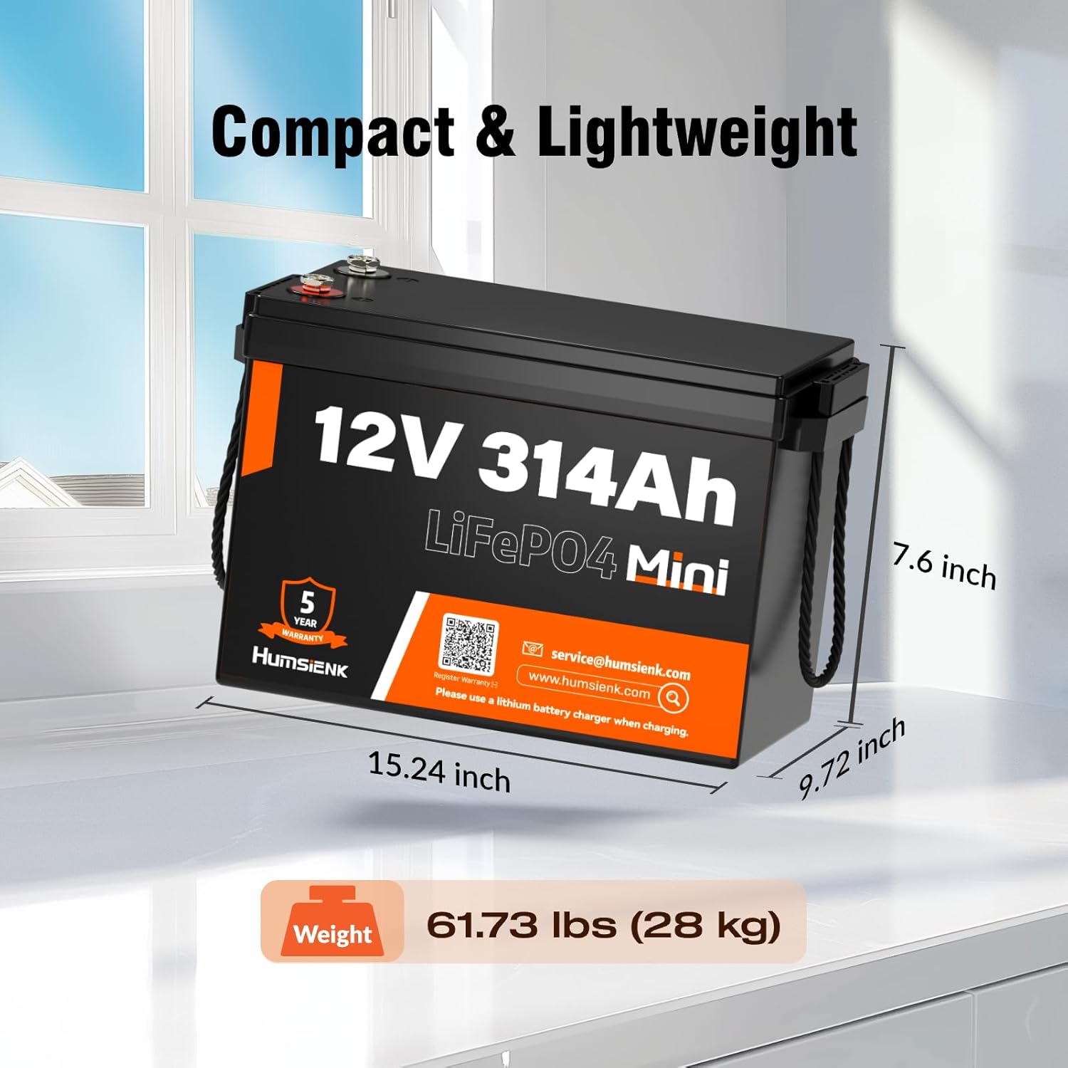 - 【4.19kWh & 15,000+ Deep Cycles】Our 12.8V 314Ah LiFePO4 battery (4 PACK) offers an impressive 15,000+ deep cycles, lasting 30 times longer than traditional 300Ah lead-acid batteries. Fully charged, the LiFePO4 battery delivers 4.19kWh of energy with nearly 100% depth of discharge (DOD), ensuring reliable power for your devices.