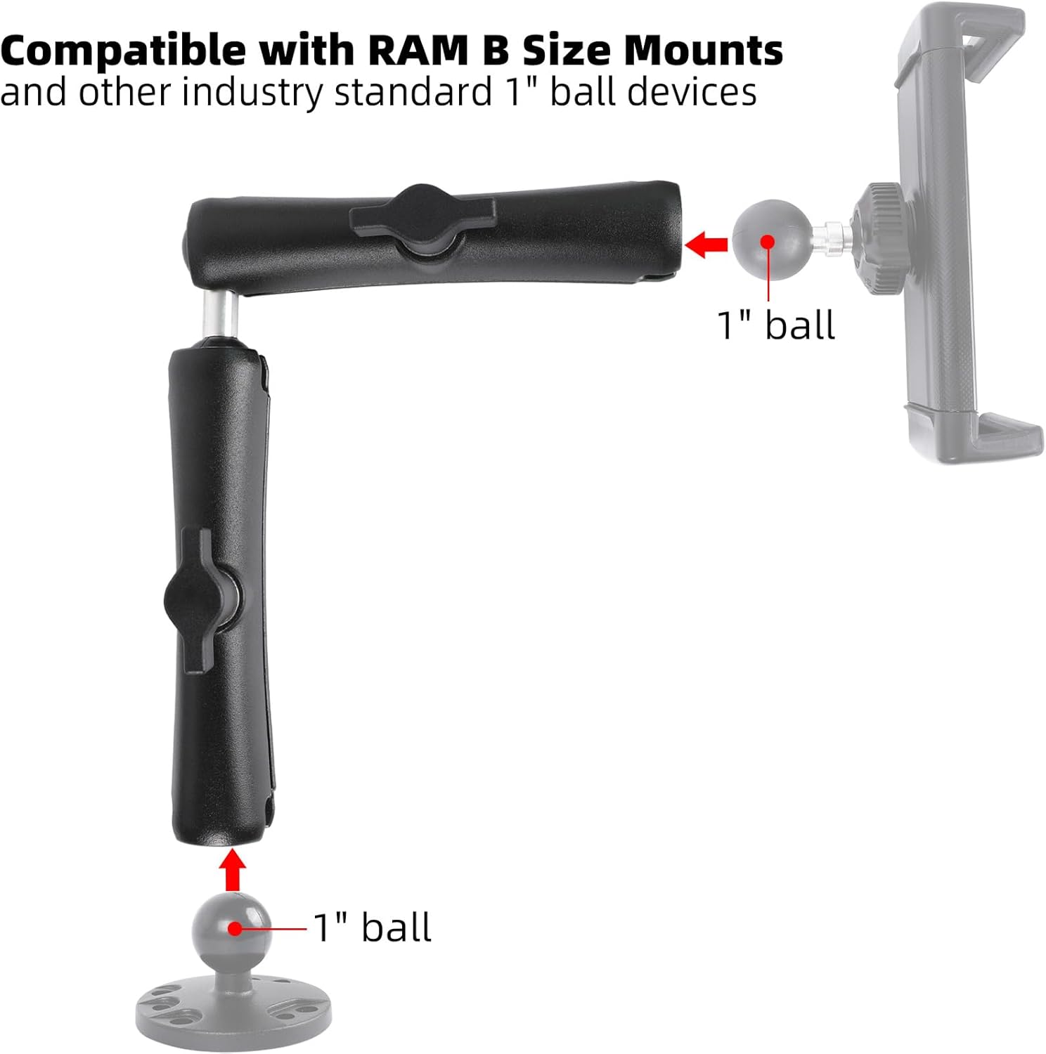 - Universal Compatibility: This versatile extension adapter is designed to work seamlessly with any device featuring a 1" ball head, making it ideal for 1" ball base tablet mounts, phone holders, GPS brackets, clamps, and drill stand systems. Fully compatible with RAM B-size mounts and other 1" industry-standard devices.