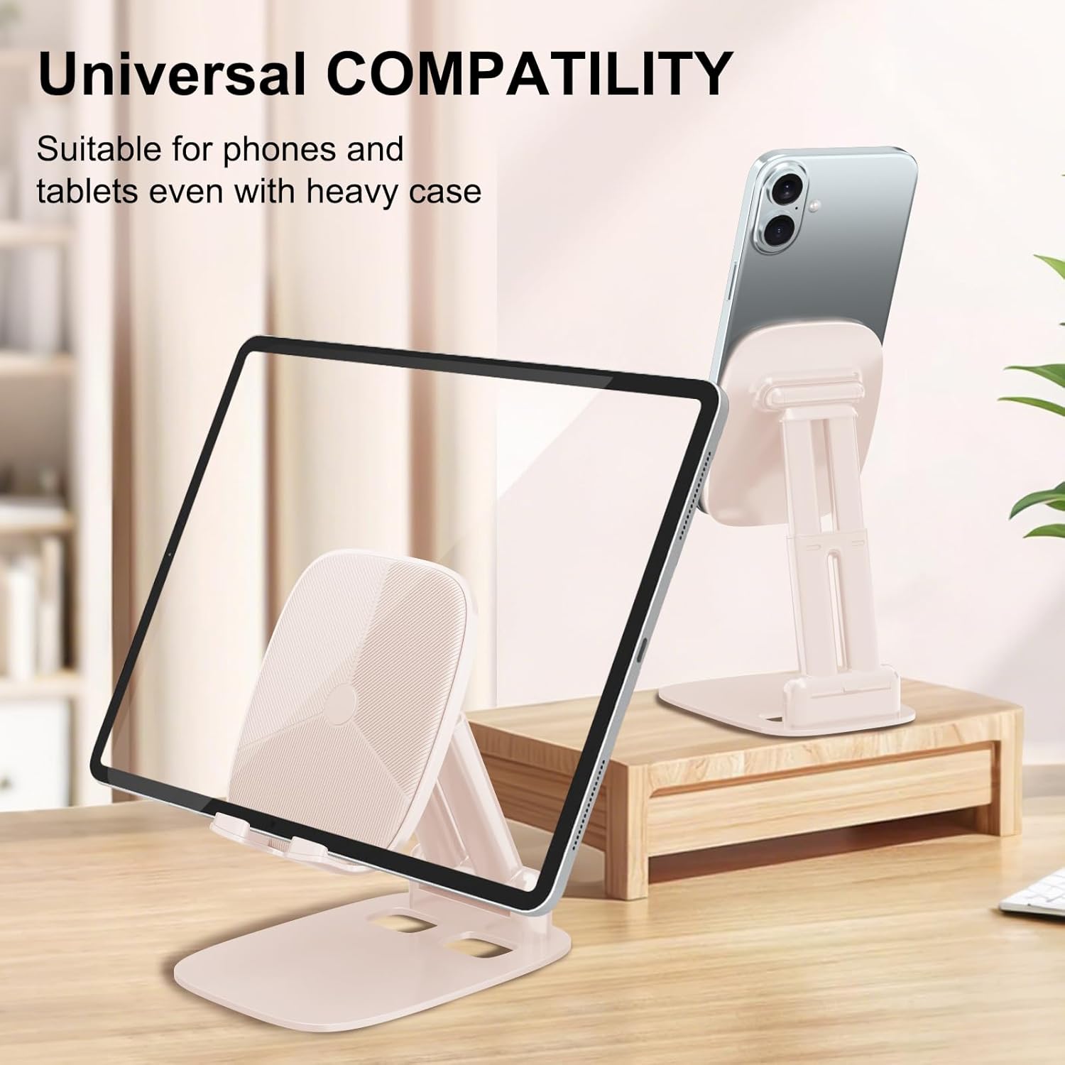 DEERLAMN Cell Phone Stand for Desk, Height Adjustable Cell Phone Holder Portable Desktop Stand, Travel Home Office Desk Accessories Compatible with iPhone 16/15/14/13/12/11 All Smartphone - Pink