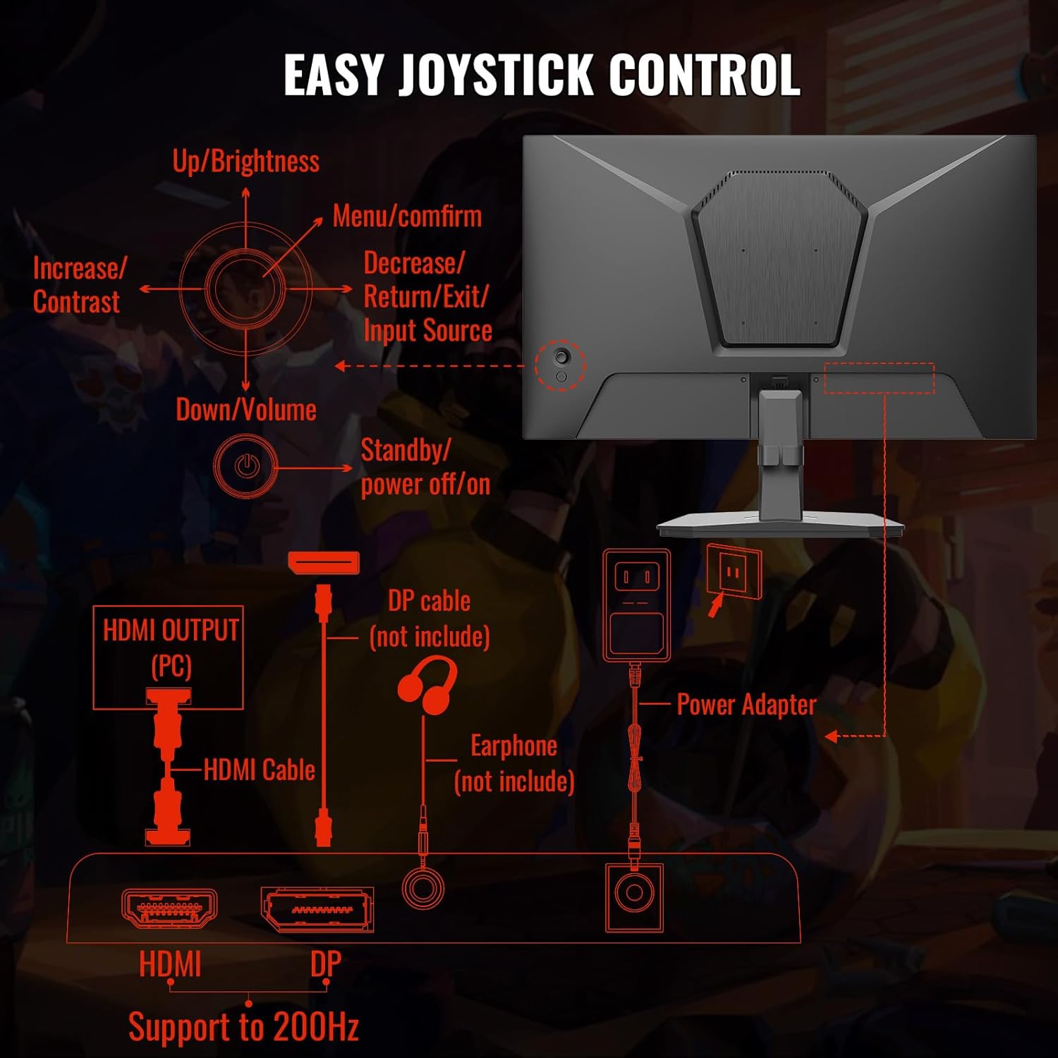 - Convenient Ports - One HDMI 2.1 ports plus one DP 1.4 port, both up to 200Hz refresh rate; One HDMI cable included in the package; Audio Jack (no built-in speakers); VESA 75mm*75mm