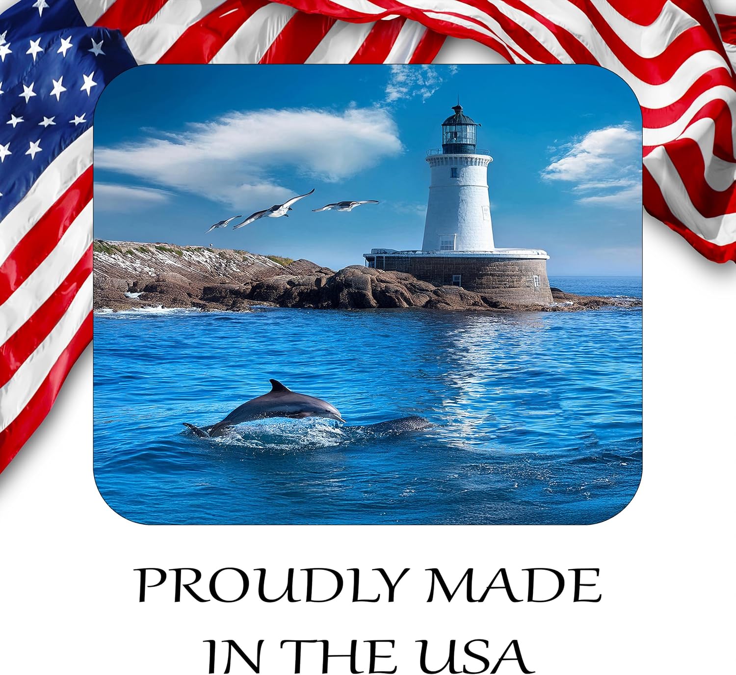 Coastal Shoreline Waves Sandy Beach Theme Mouse Pad Mat Mousepad for Desk Computer Laptop PC Gaming Home or Office Gift (Dolphin Lighthouse MP17)