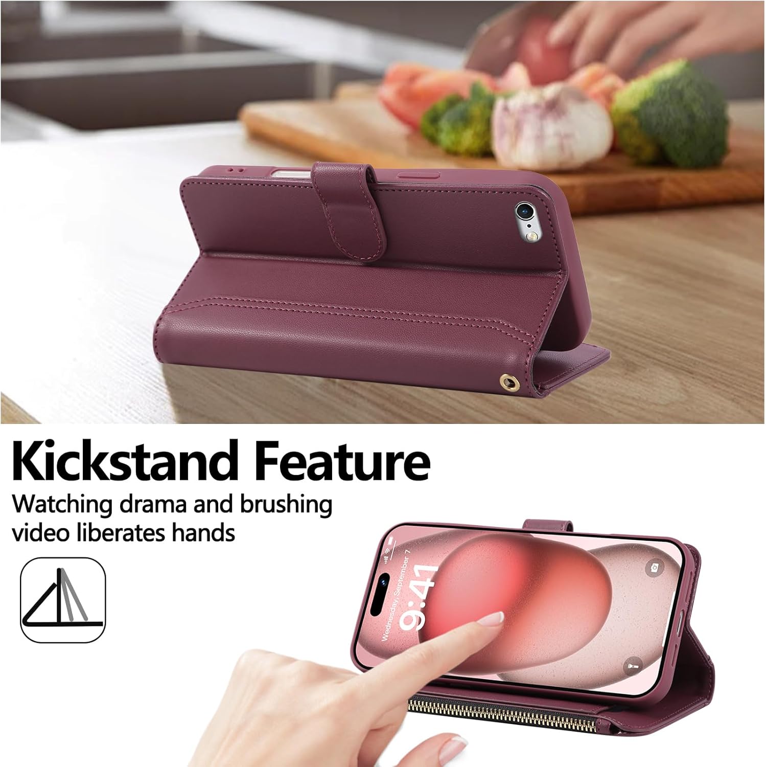 - 【All-in-One Functionality】: Store 5 cards effortlessly in dedicated slots, secure coins in the zippered compartment, and organize cash in the inner pocket. This 3-in-1 wallet case eliminates bulk while keeping essentials within reach