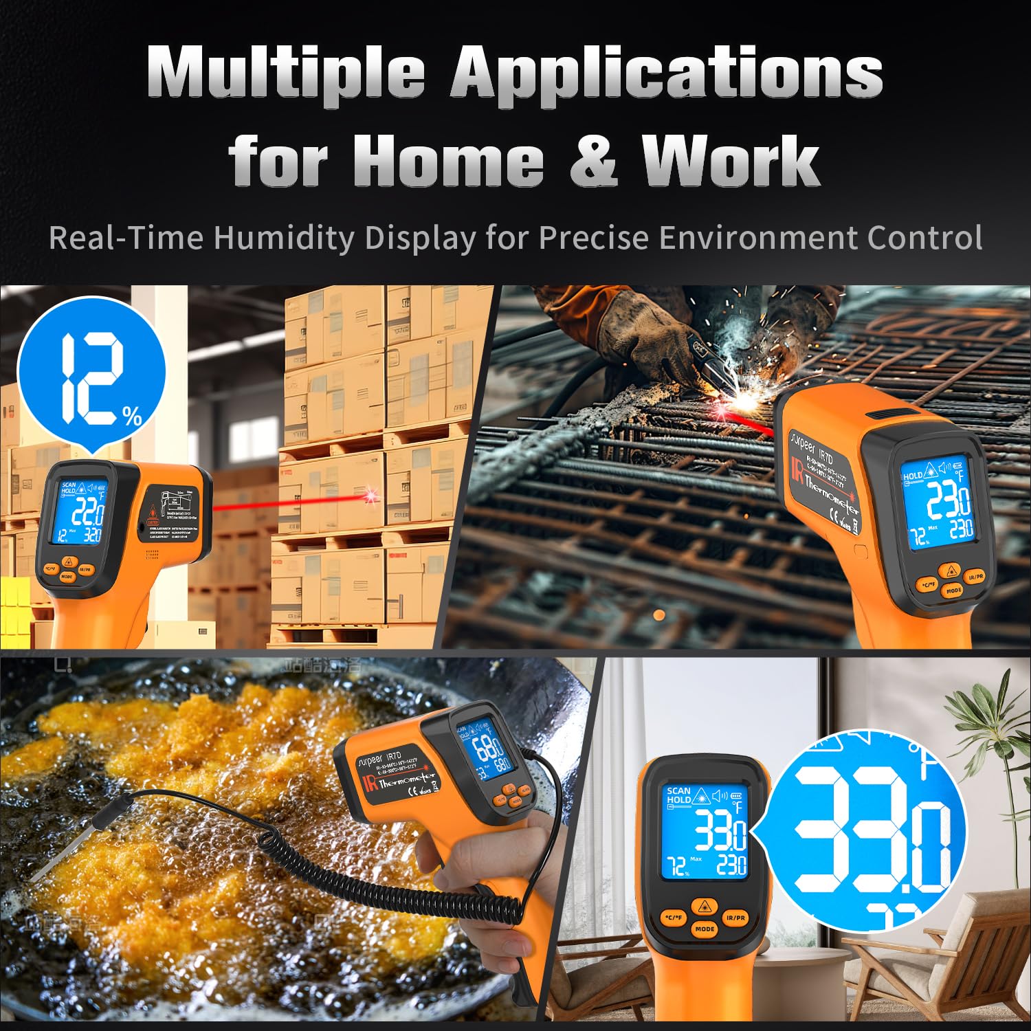 - User-Centric Design – Features a backlit LCD, ℃/℉ switching, low battery alert, 10 s auto shut-off, and 12 h battery life; includes durable holster for convenient carry.