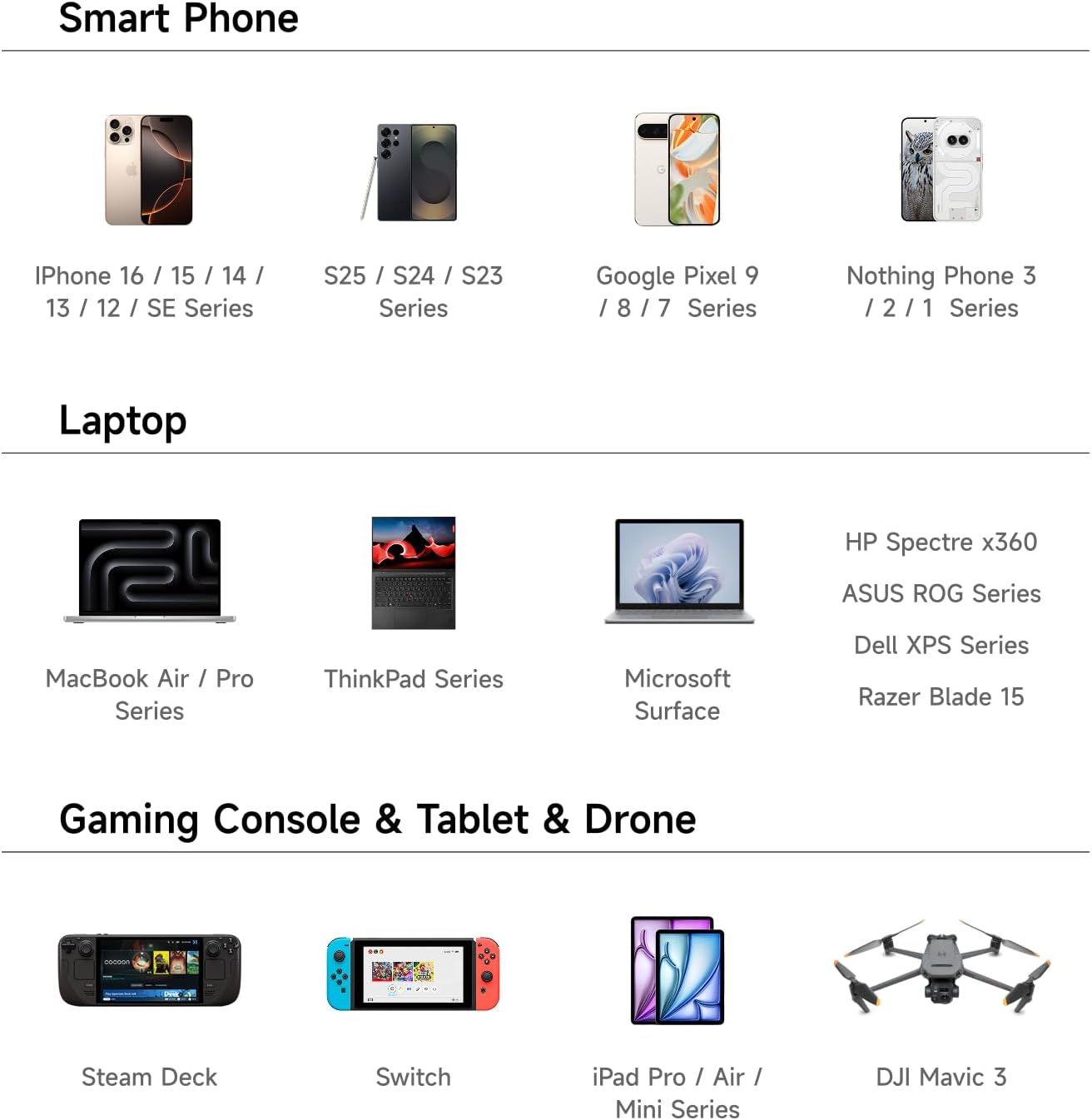 - 100W Max Fast Charging: Charge your MacBook Pro 14'' from 0 to 50% and iPhone 16 from 0 to 55% in just 30 minutes