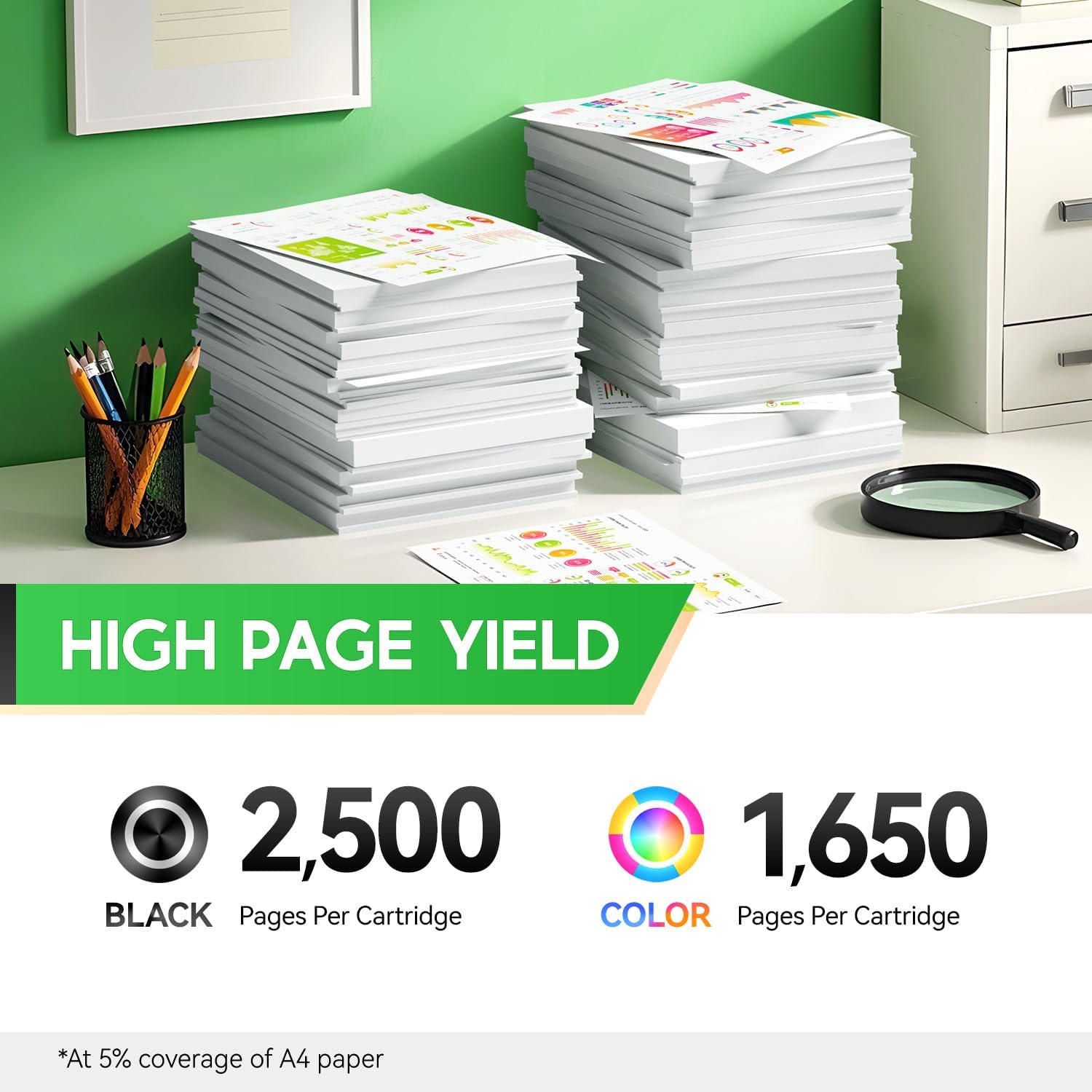 - HIGHER PAGE YIELD: Print more paged with X-Large capacity. 936e ink cartridges combo pack up to 2500 pages per 936e black cartridge, 1650 pages per 936e color cartridge.(At 5% coverage on A4 paper)