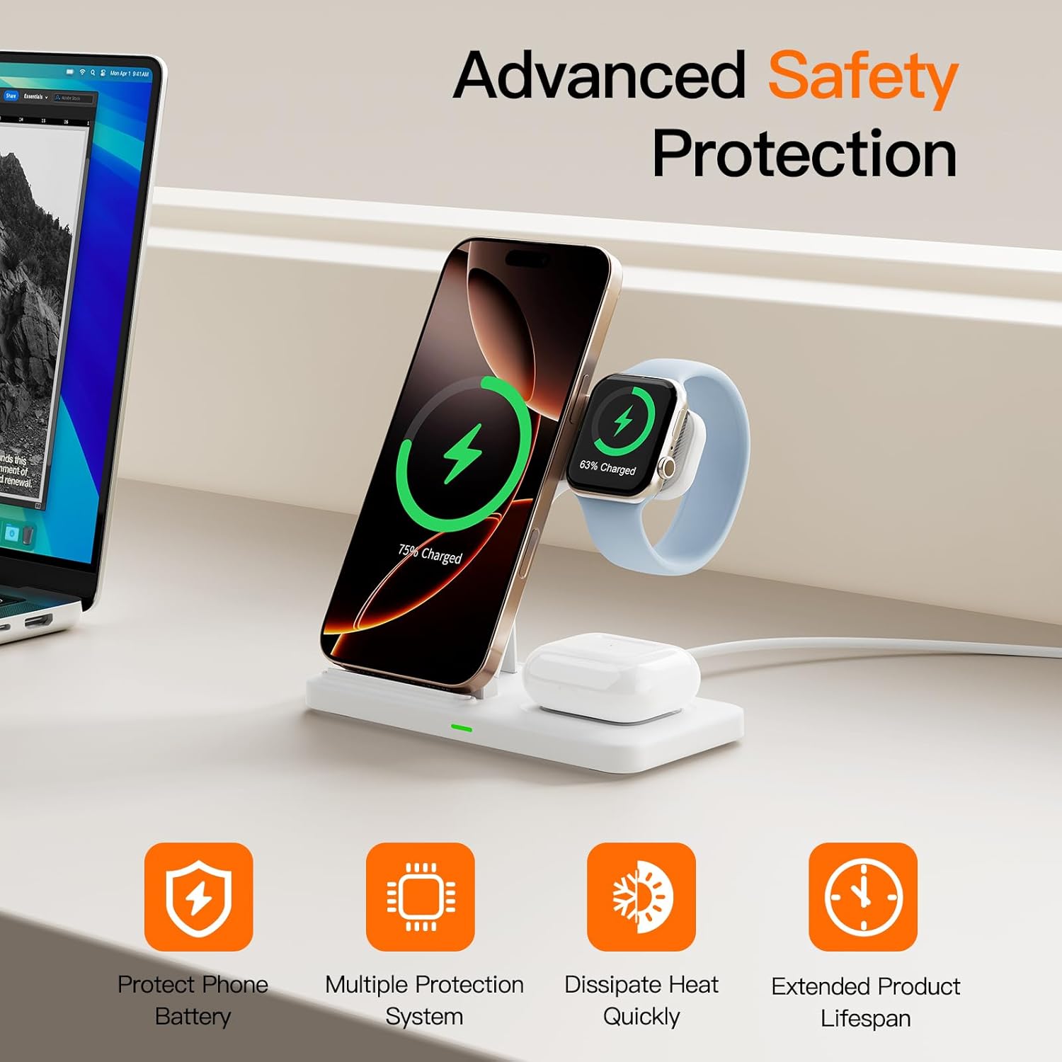 2025 3 in 1 Wireless Charger for iPhone 16 15 14 13 12 11 XR 8, Apple Charging Station for Apple Watch 10/9/Ultra/8/7/SE/6/5/4 & AirPods Series, Wireless Charging Station for Multiple Devices Apple