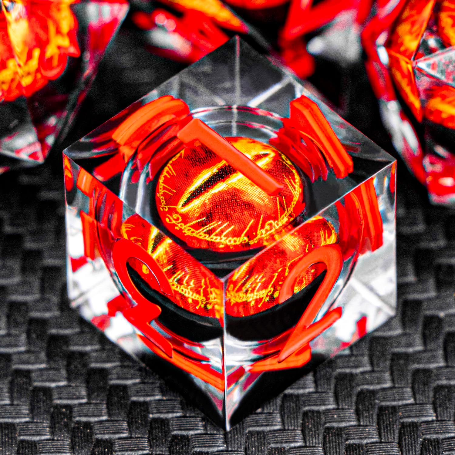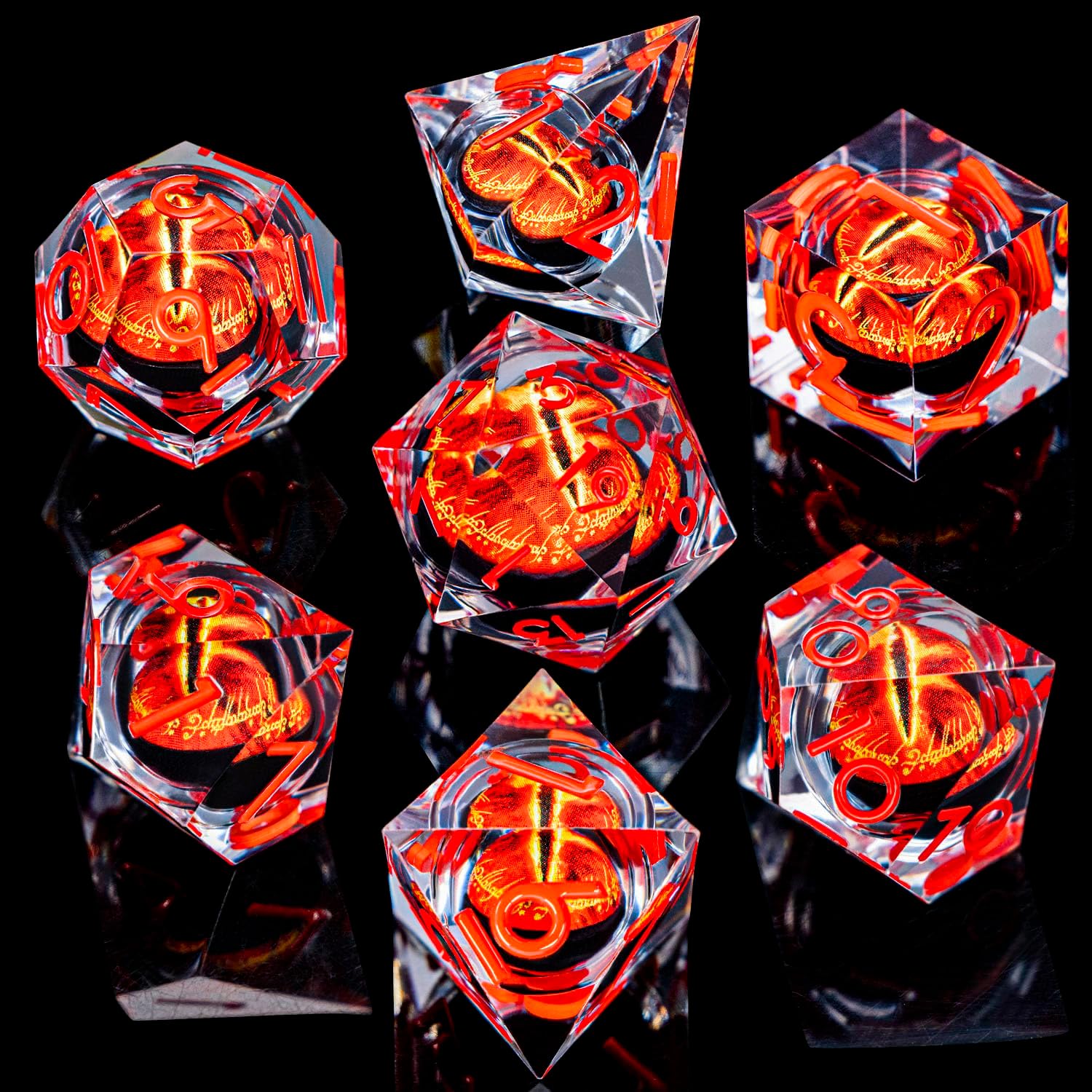 ARUOHHA DND Resin Dice Gazes Eye Dice Liquid Core Red RPG Sharp Edged Dice Set with Gift Box, Polyhedral D and D Dice Set Compatible with Dungeons Dragons Role Playing Game D20 D12 D10 D8 D6 D4