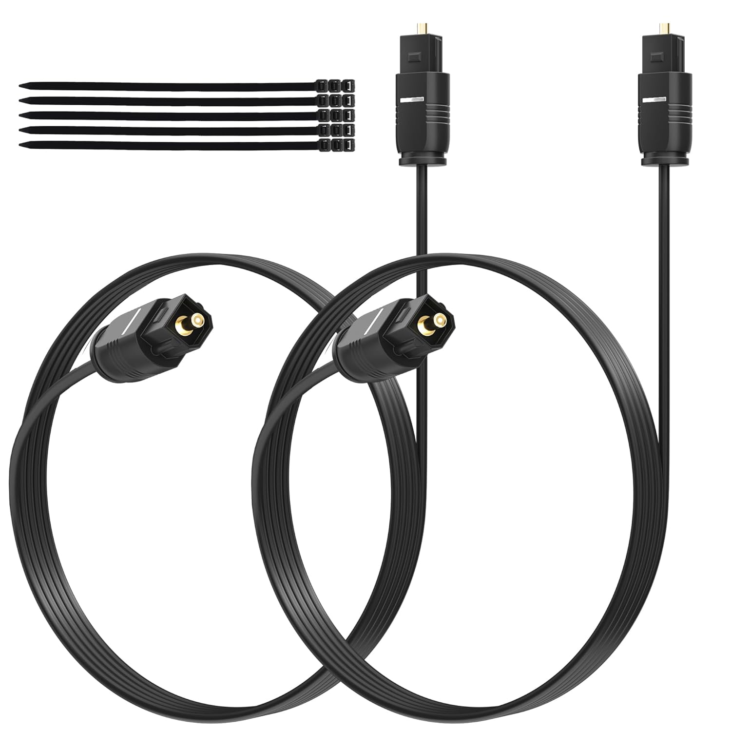 Adoreen Ultra-Thin Slim Digital Optical Audio Cable 10 FT/2 Pack, Fiber Optic Toslink SPDIF Cord Gold-Plated High-Speed Flexible & Durable for TV Soundbar Home Theater Game Console PS4 Xbox +Ties