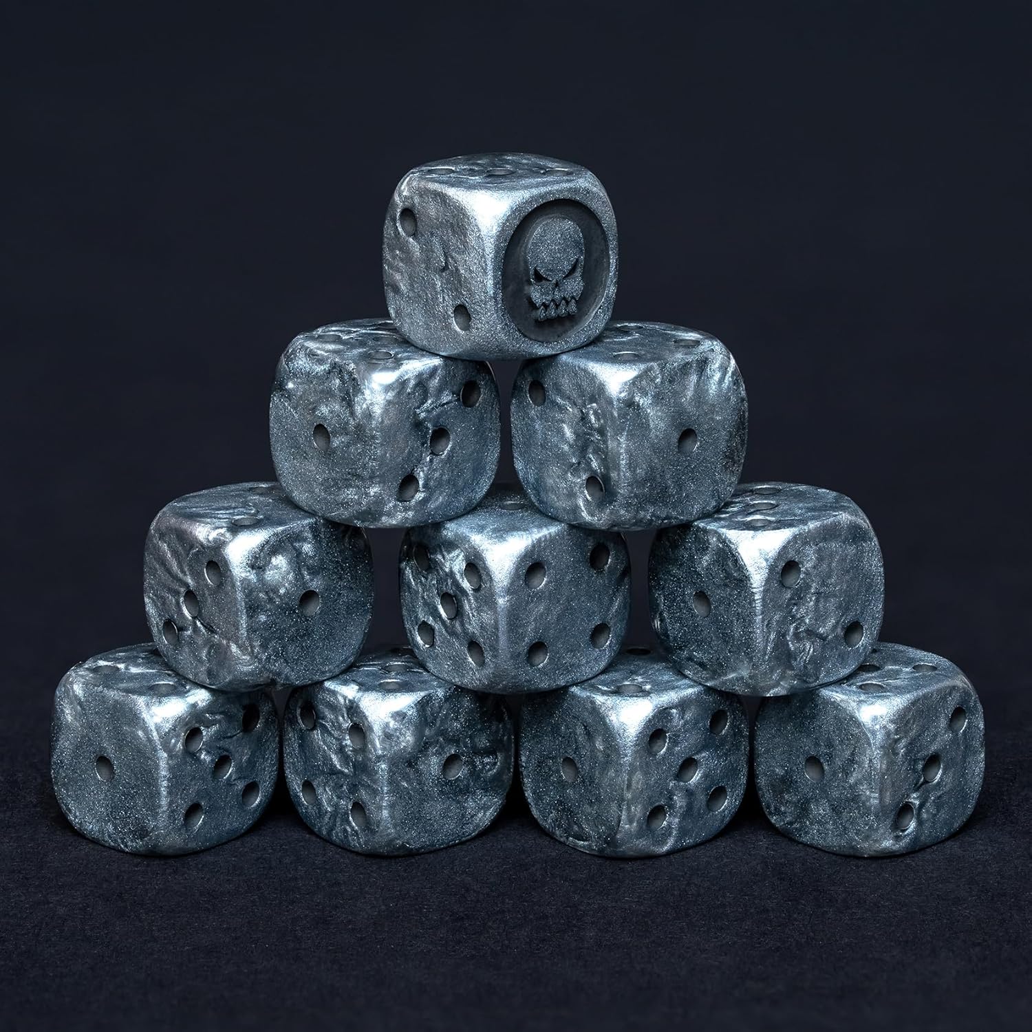 - π€ Metallic Finish with Dark-Core Pips With a killer silver-graphite blend and dark matte engraved pips, these dice scream grim battlefields. The metallic swirls feel like theyβve been pulled straight out of a warpstorm.
