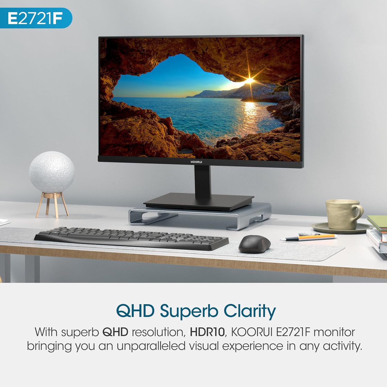 KOORUI 27 Inch QHD (2560x1440) IPS Ultra-Thin Computer Gaming Monitor, 100Hz Refresh Rate, DCI-P3 95%, FreeSync & G-Sync, 1ms MPRT, VESA 100x100mm, Tilt Adjustable for Game and Work