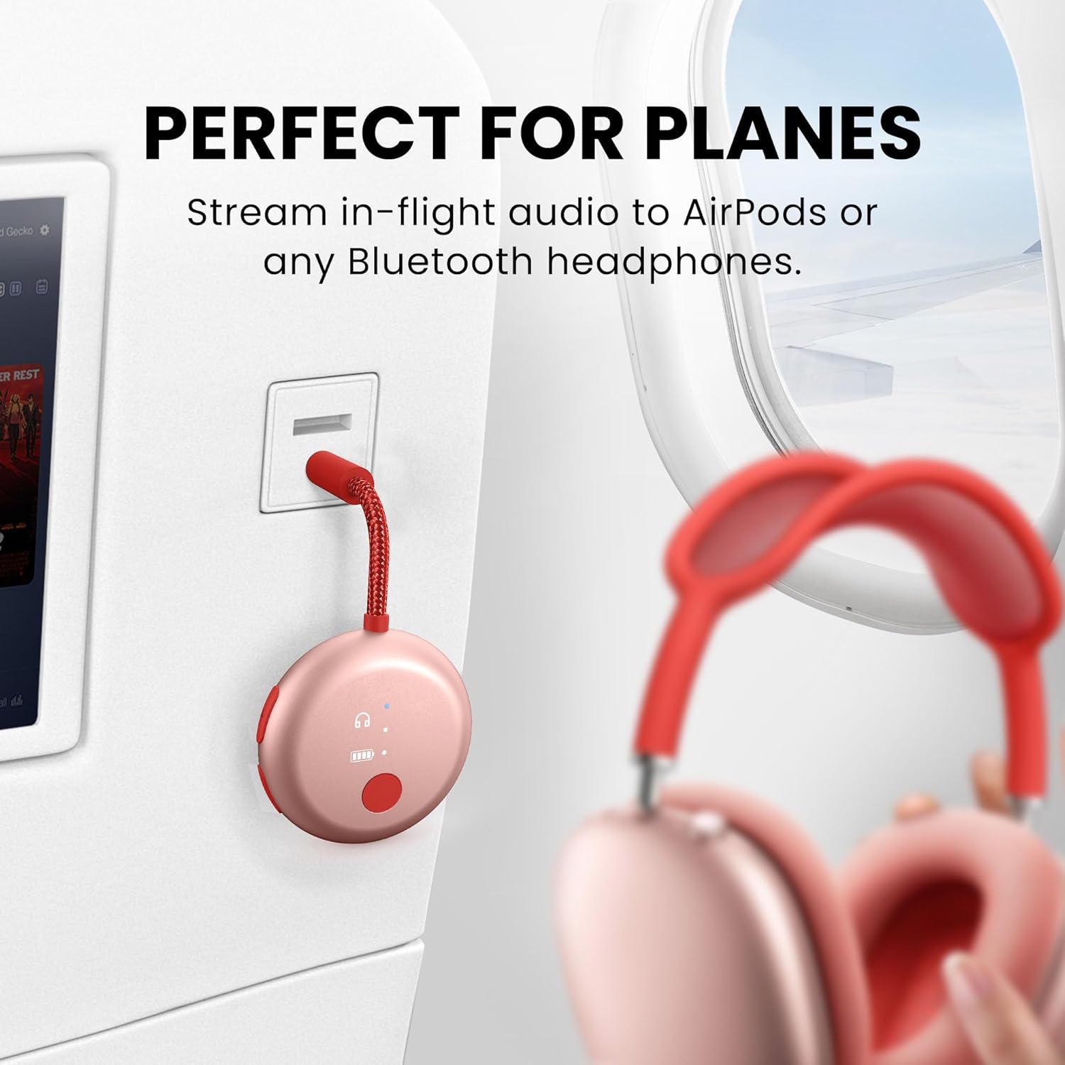 - 【DESIGNED FOR AIRPLANE TRAVEL】 Connect your Bluetooth headphones or AirPods to airplane seatback audio using the AUX jack or included dual-prong adapter. Perfect for wireless audio on most flights and planes.