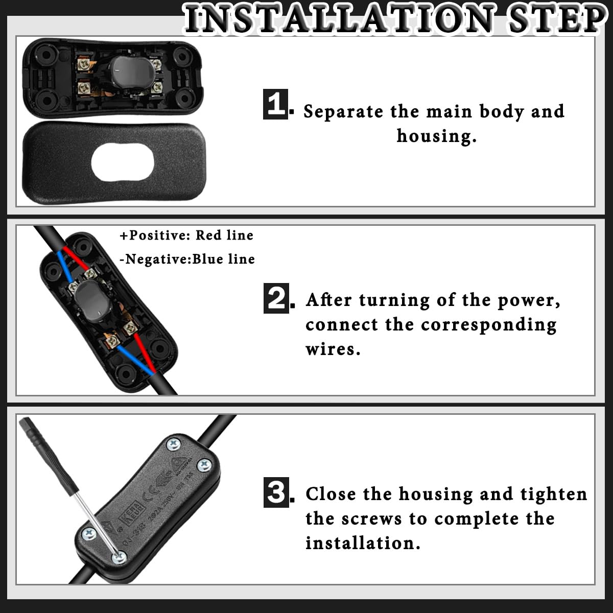 - 【Package Include】6PCS 318 Inline Cord Switch, 24PCS Screw, 1PCS Cross Screwdriver(3mm x 80mm).