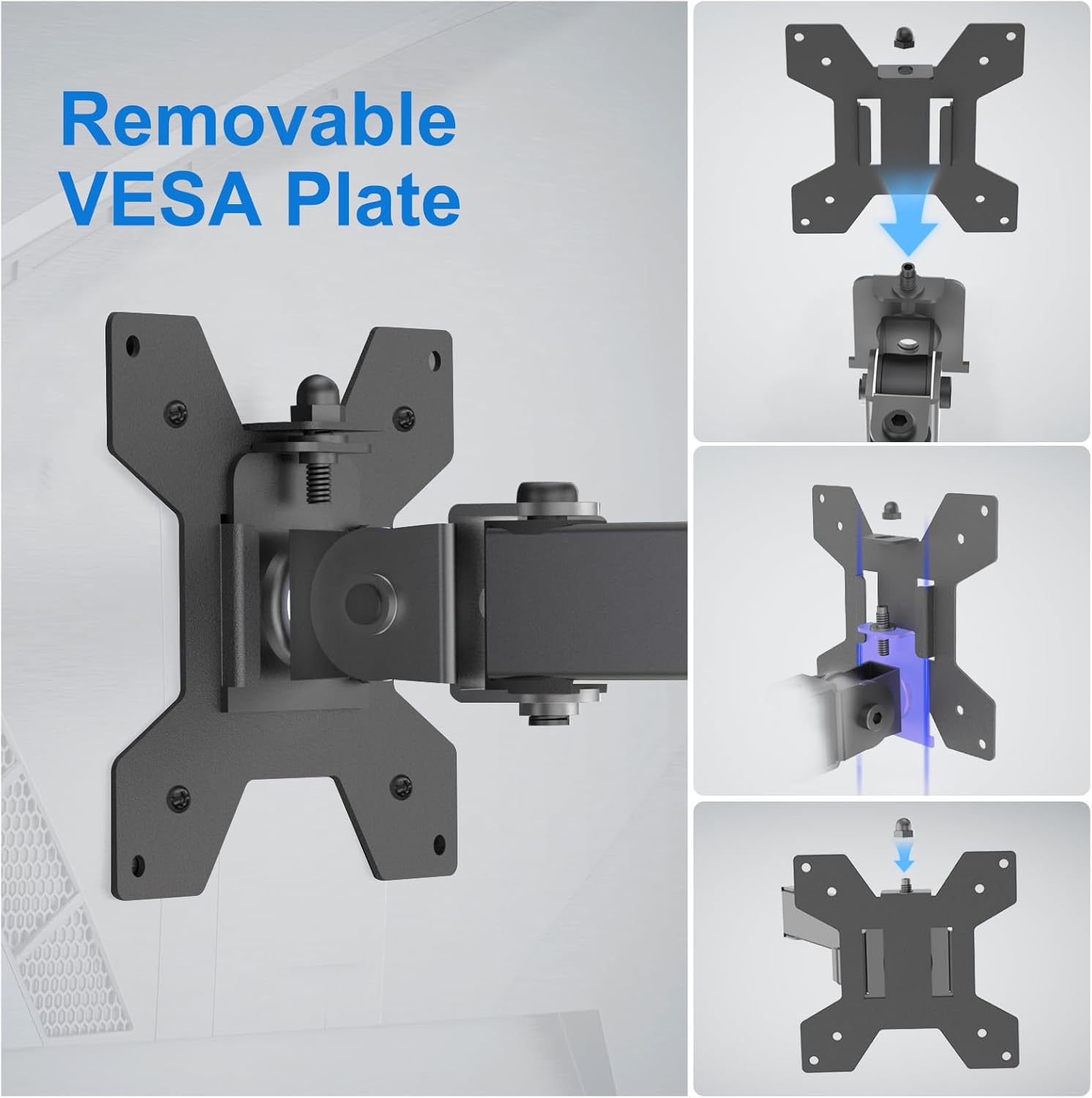- 【Easy Installation】Our monitor mount is easy to install with C-clamp, it won't damage your desk. And Mounting your monitor is a simple process with removable VESA plate.