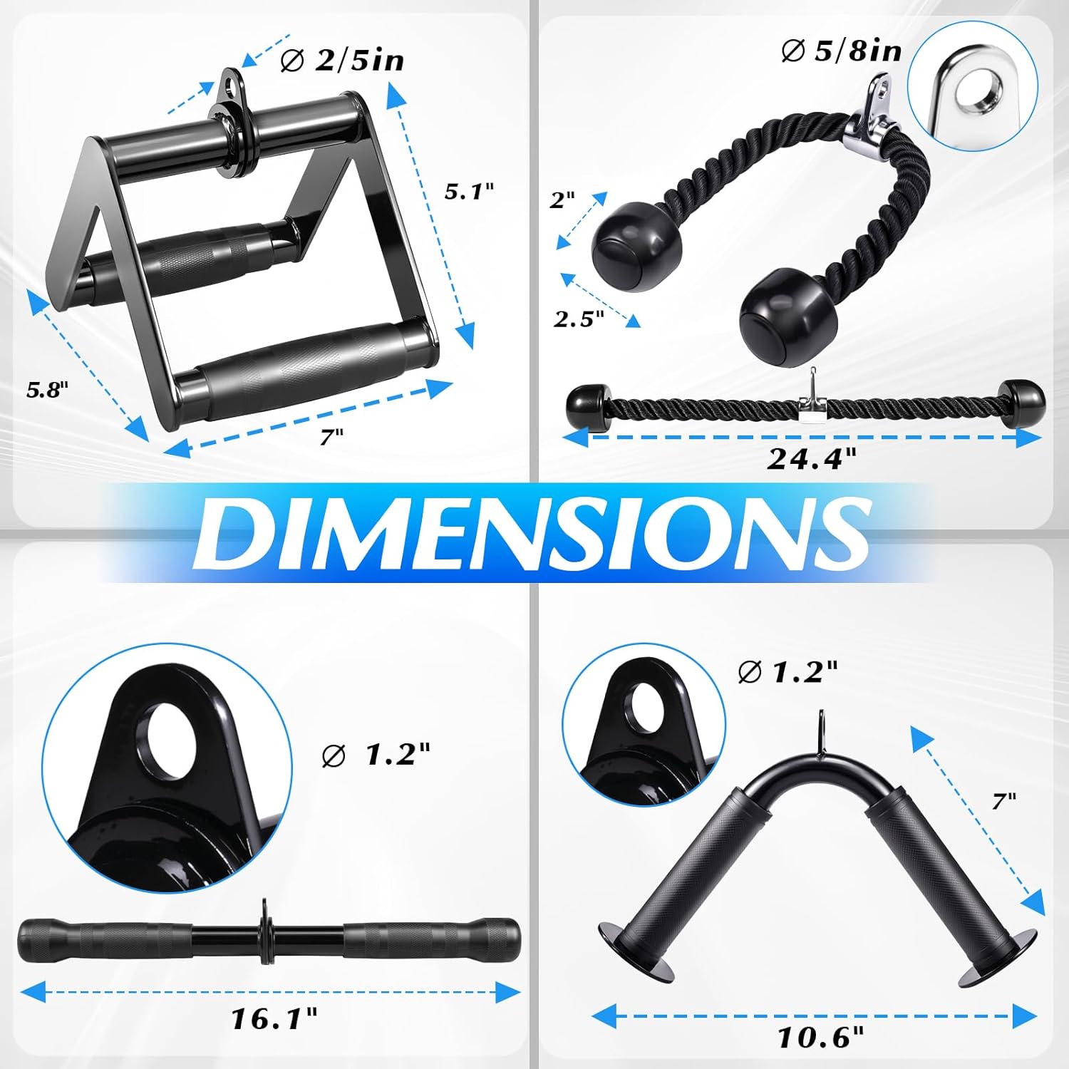 10-in-1 Cable Machine Attachments Set for Gym - Includes Tricep Rope, V-Bar, Straight Bar, D-Handle, Ankle/Wrist Straps, Storage Bag - Compatible with LAT Pulldown & Home Gym Cable Machines