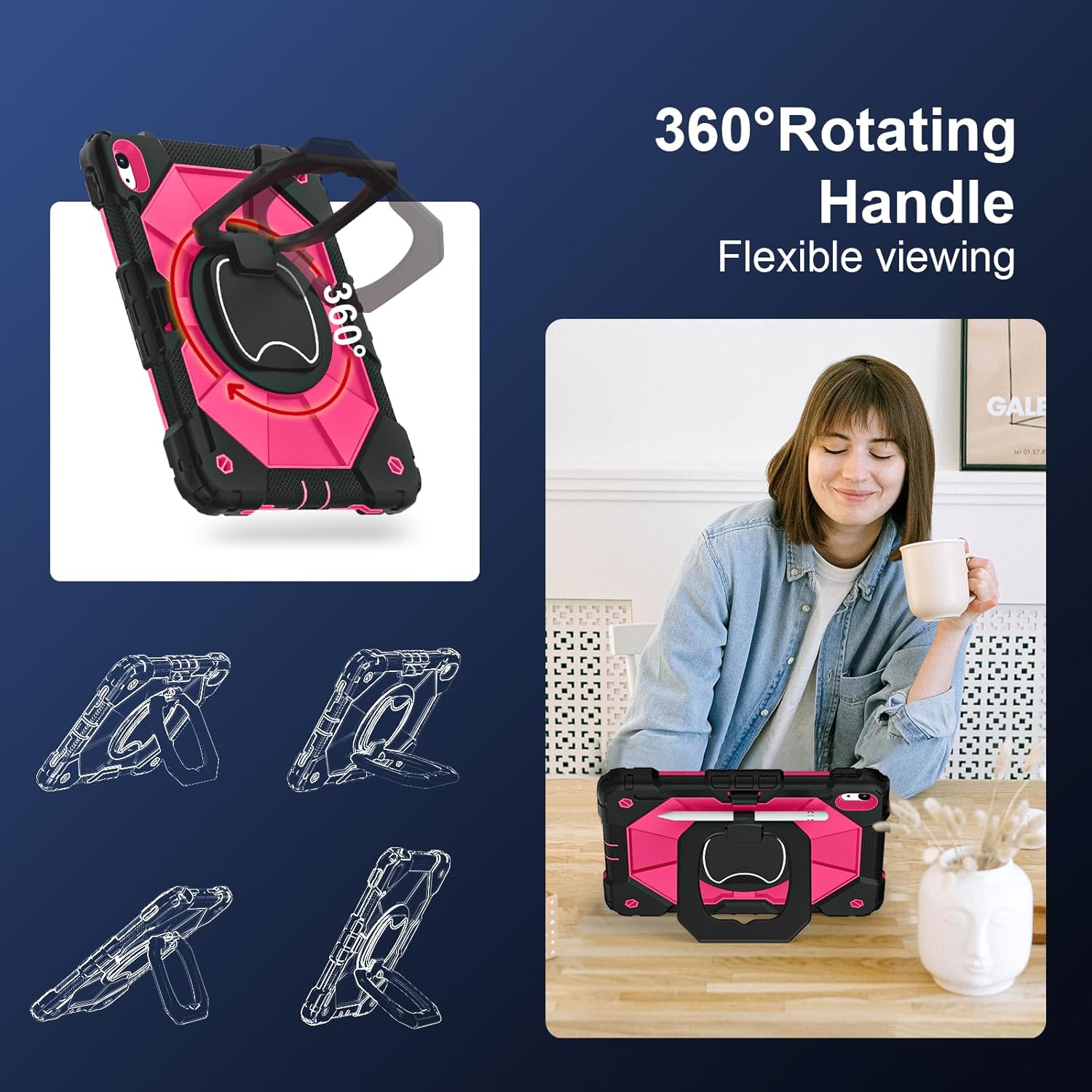 Case for iPad (A16) 11th Generation 11 Inch (2025) / iPad 10th Generation Case 10.9 Inch (2022) with 360° Rotating Stand Screen Protector Pen Holder Shoulder Strap, Black Pink