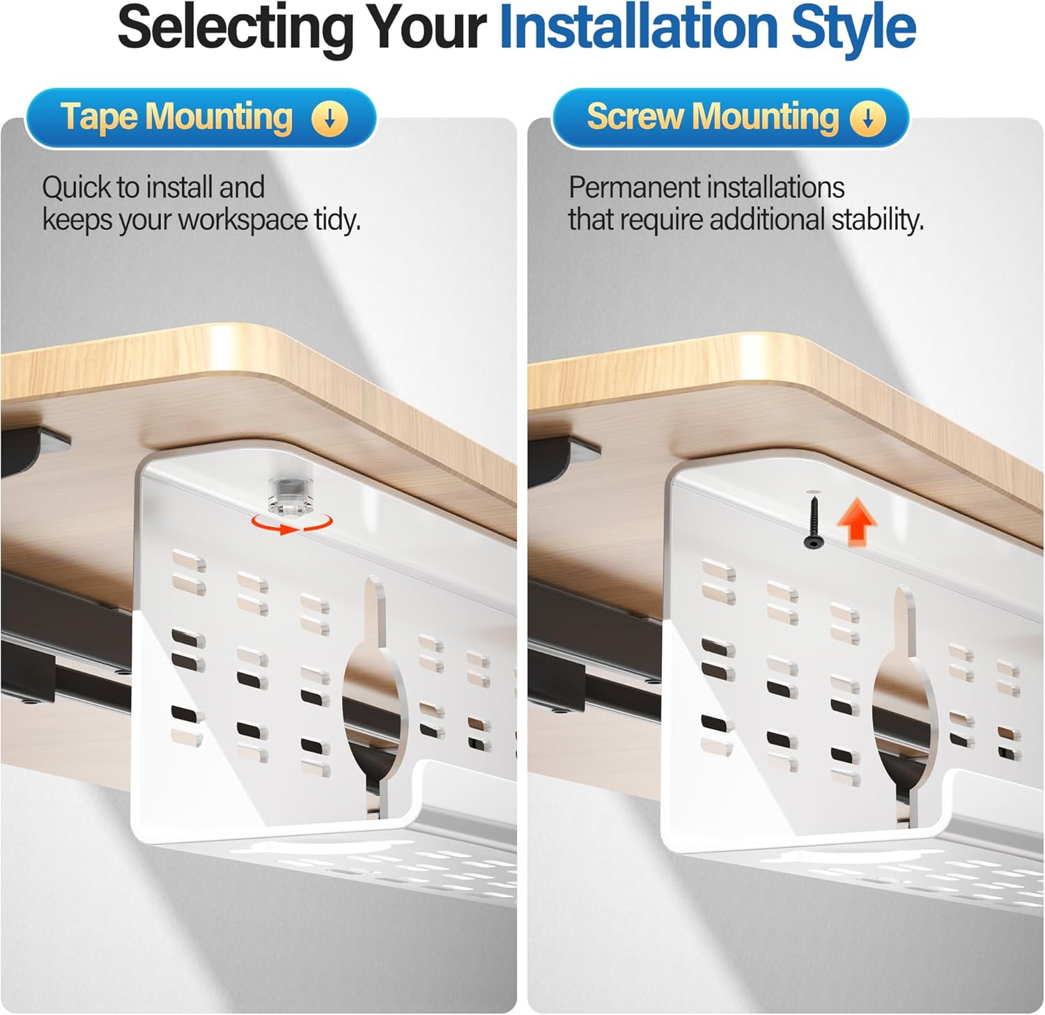 - 【Flexible Installation Options】 Our cable organizers can choose between tape (smooth surfaces) or screws (wooden desks) - adapts perfectly to any workspace, including standing/glass/L-shaped desks.