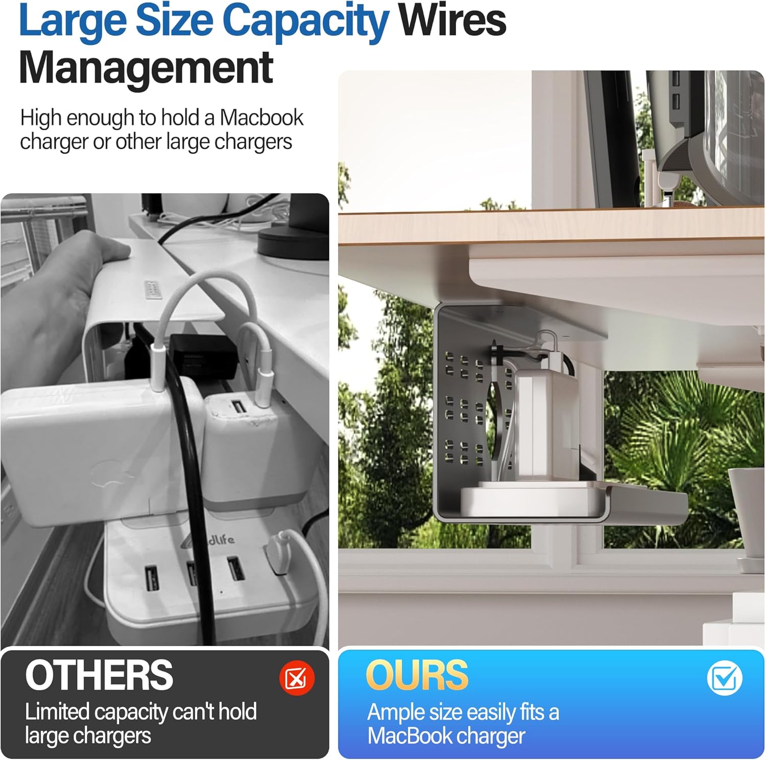 - 【Industrial Grade Durability】 Made from high-quality steel, our 11lb cord organizer for desk won’t sag or bend, with a reinforced frame for lasting stability and durability for all cable management needs.
