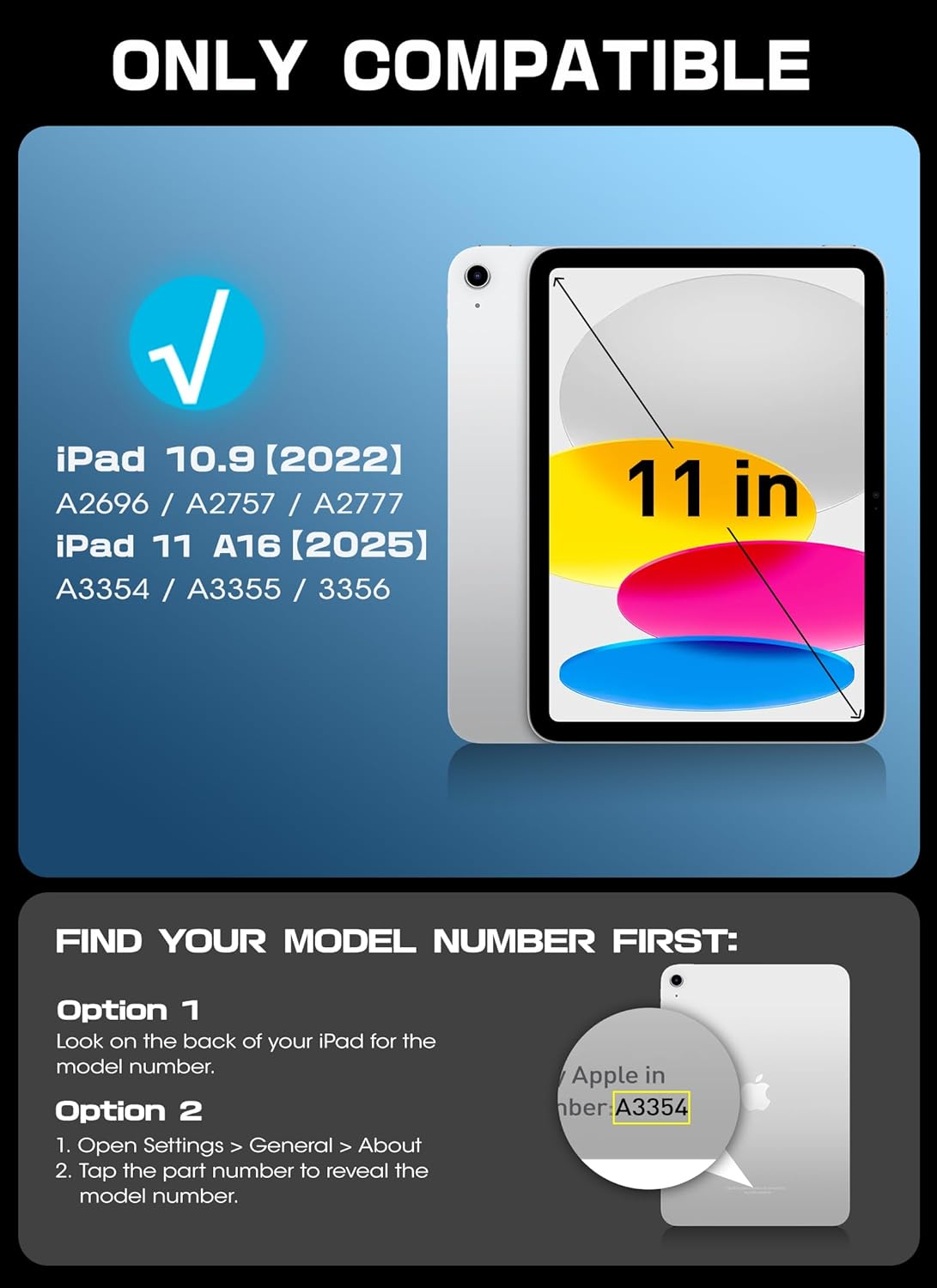 - [Compatibility] Designed for iPad (A16) 11th generation 11 inch 2025 & iPad 10th generation 10.9 inch 2022. Model Number: A3354/A3355/A3356/A2696/A2757/A2777.