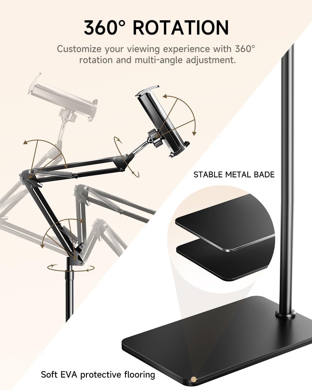 - Universal Compatibility with Adjustable Tablet Floor Stand: This versatile tablet floor stand caters to a wide range of devices 4.7-11 inches, widely compatible kindle, tablets, and iPhone. Its robust design ensures your device is securely held in place.