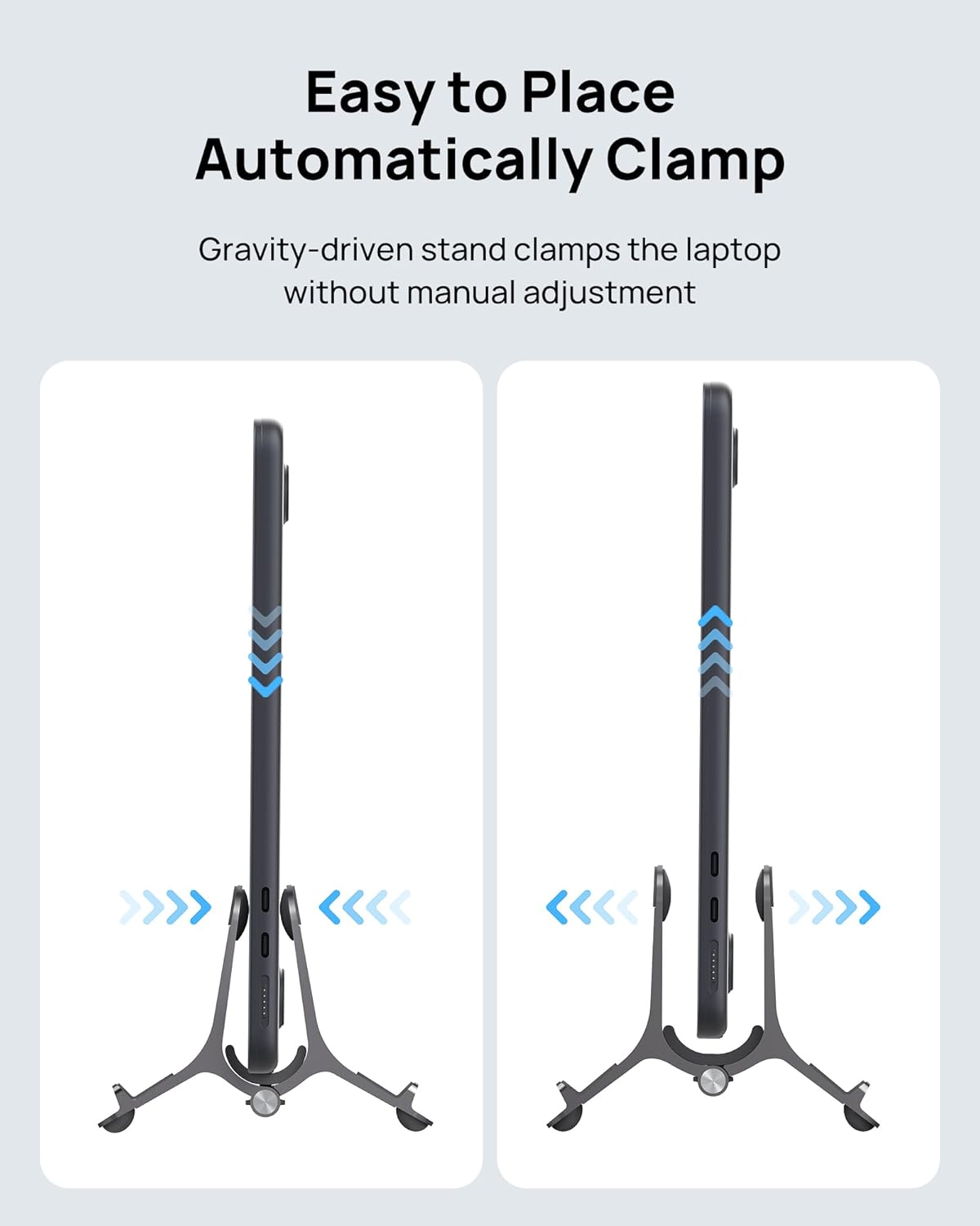 - 【Effortless Gravity Auto-Lock Mechanism】 Say goodbye to fiddly adjustments! Our innovative gravity-activated locking system in this laptop stand vertical ensures quick, secure placement. No tools or complicated setups needed—just slide in your device and let gravity do the work, providing peace of mind and seamless integration into your daily routine.