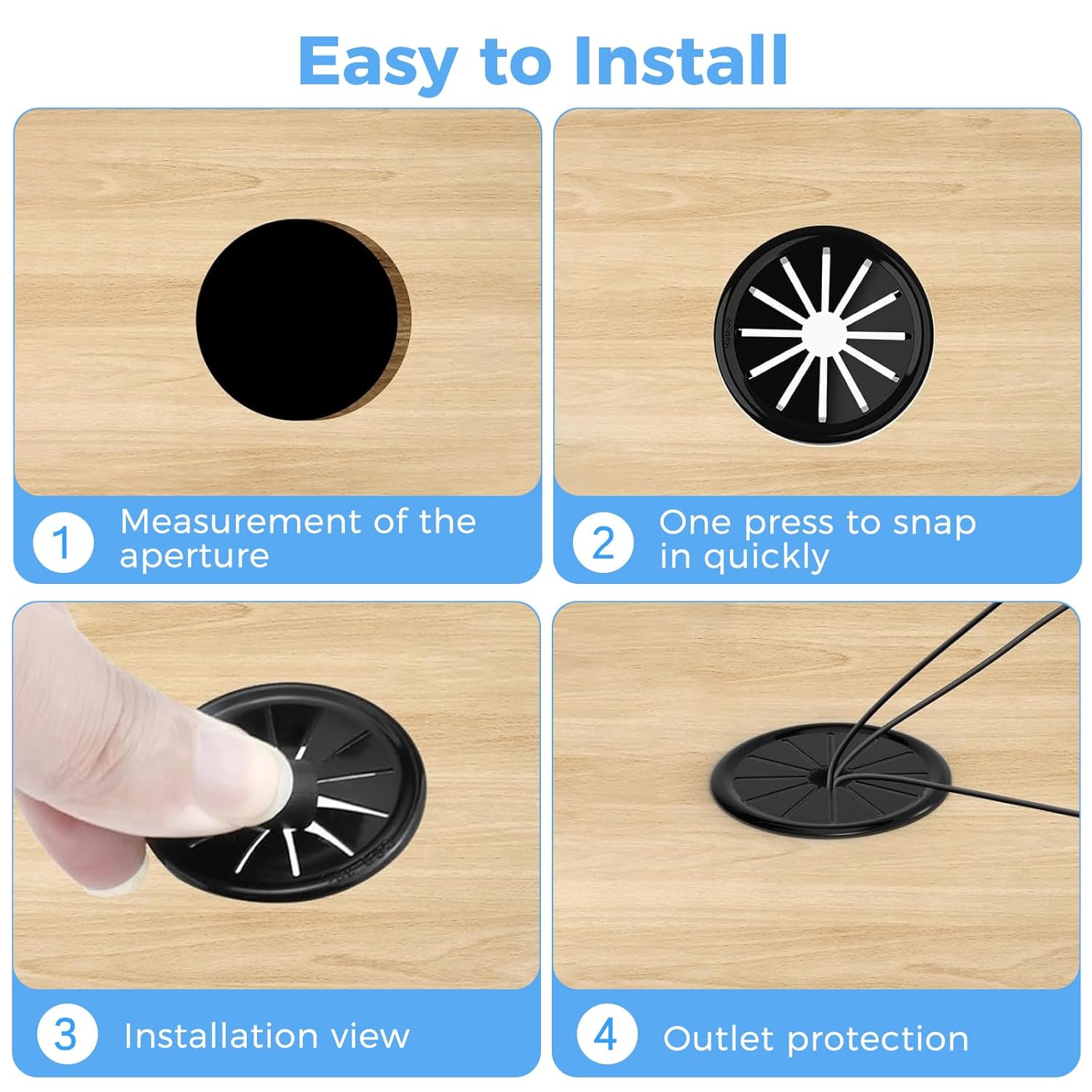 - Maintain Safety: The desk hole grommet helps to organize cables on your desktop, keeping it tidy and improving productivity; The buckle design on both sides ensures secure installation and the petal shaped countertop hole cover smooth surface protects cables from sharp edges, reduces bending and pulling of cables, extends cable life and ensures a safe work area