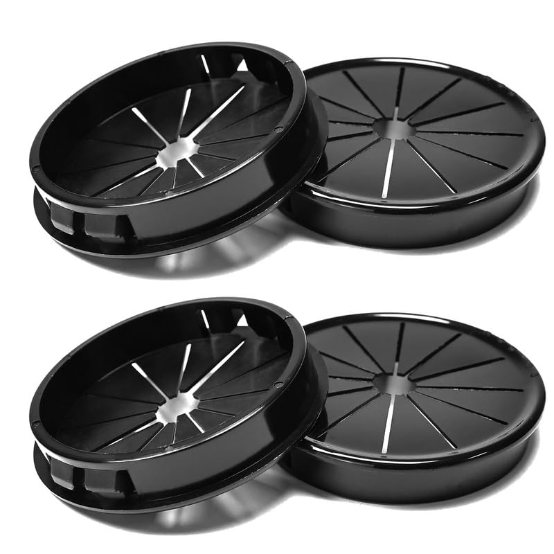 4PCS Cable Grommets, 2-1/2"(63mm) Desk Hole Cover Petal Shaped Buckle Type Nylon Snap Bushing Grommet, Wire Hole Cover Insert for Cables and Cords Management and Protection of Cabinet, Black