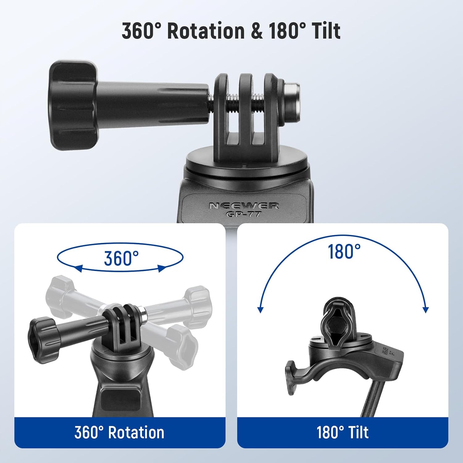 - 【360° Rotation & 180° Tilt】 The strap mount enables 360° rotation and 180° tilt using the locking screw, ensuring your action camera is securely positioned for flexible angles, and enhancing the shooting experience