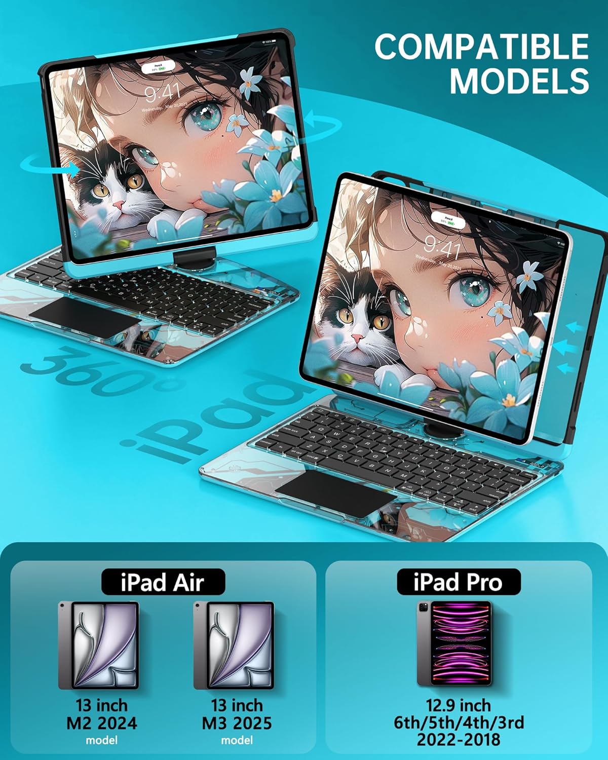 - ✅【Compatible with iPad Air & Pro】 Fits iPad Air 13" (M3/M2, 2025/2024), Pro 12.9" 6th/5th/4th/3rd (2022-2018). ❗ Not for Pro 13" M4 2024 ❗ Check and confirm model before purchase.