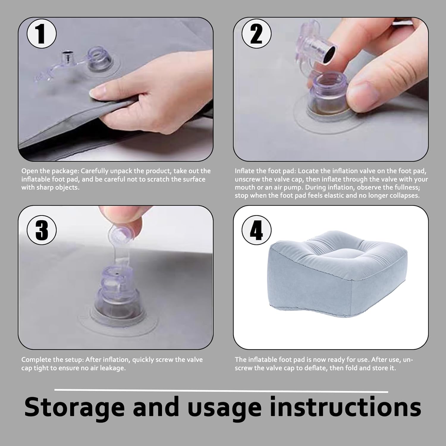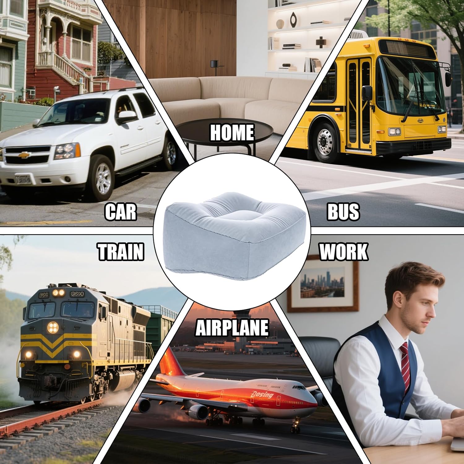 Inflatable Foot Rest Pillow - Portable, Non-Slip Base for Desk, Office Chair, Travel & Bed - Ergonomic Foot Support & Comfort (Grey)