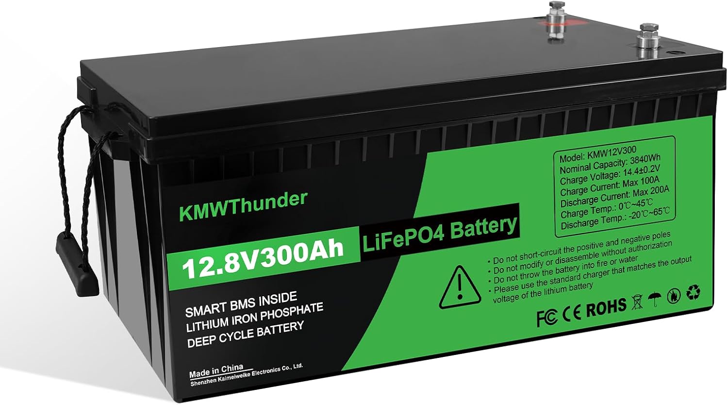12V 300Ah LiFePO4 Lithium Battery, Built-in Smart BMS,Low-Temp Protection Up to Group 31 Deep Cycle Battery for Trolling Motor, RV, Solar, Marine, Camping and Off Grid Applications